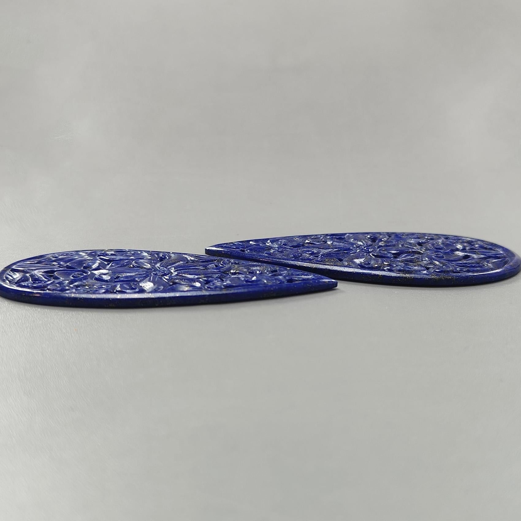 123.80cts Untreated Lapis Lazuli Hand Carved Pear Shape 76*32mm Pair