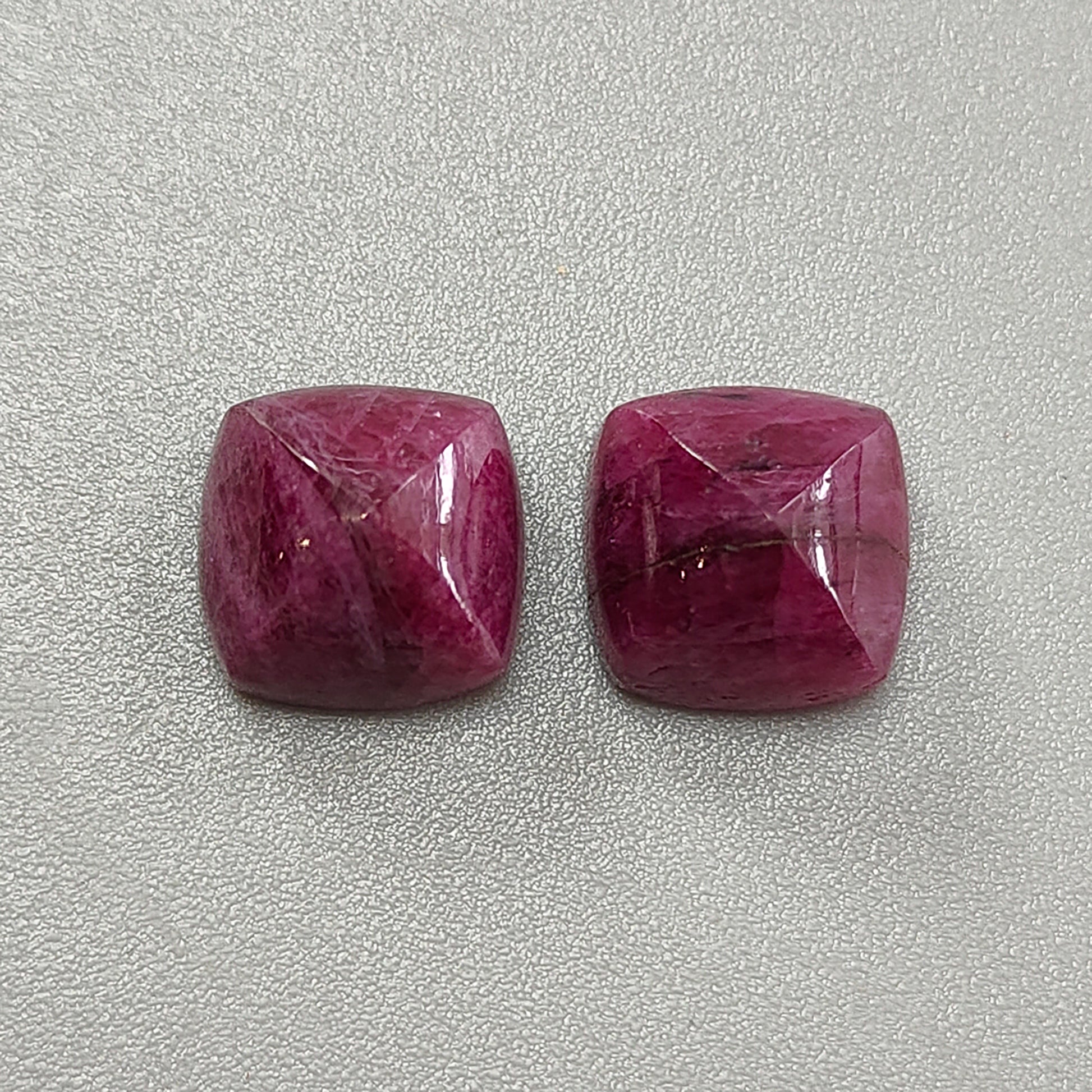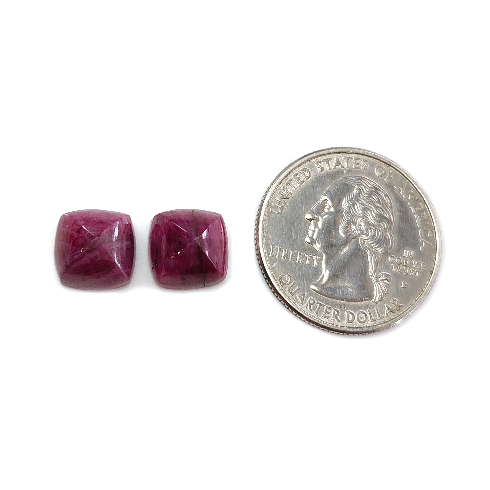 Red Ruby Gemstone Cabochon: 13.40cts Untreated Red Ruby Sugarloaf Shape 10mm 2pcs for Jewelry July Birthstone
