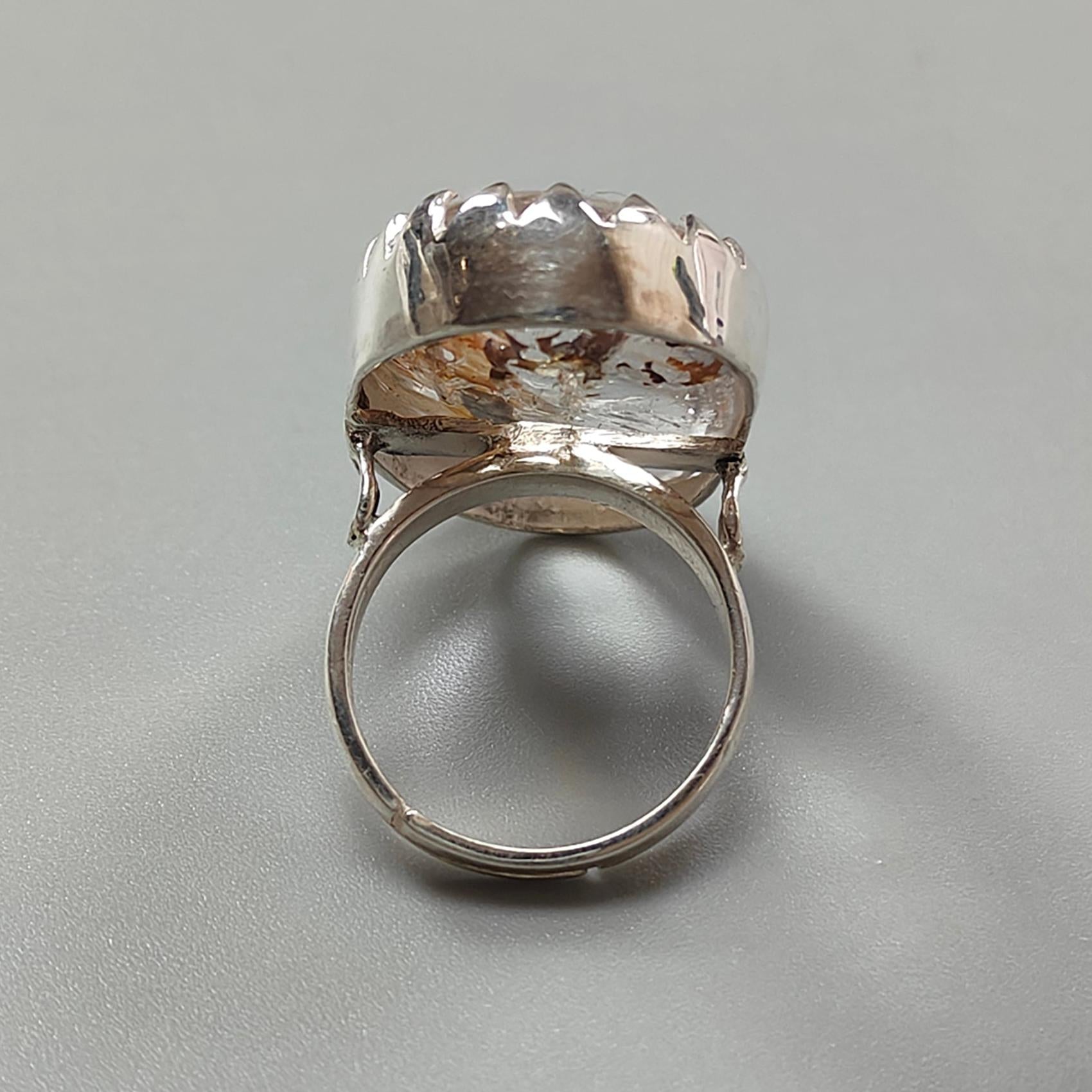 Amethyst Plain Silver Ring: 14.37gms Natural Untreated Super Seven Amethyst Oval Shape Plain 925 Sterling Silver Bezel Set Adjustable Ring