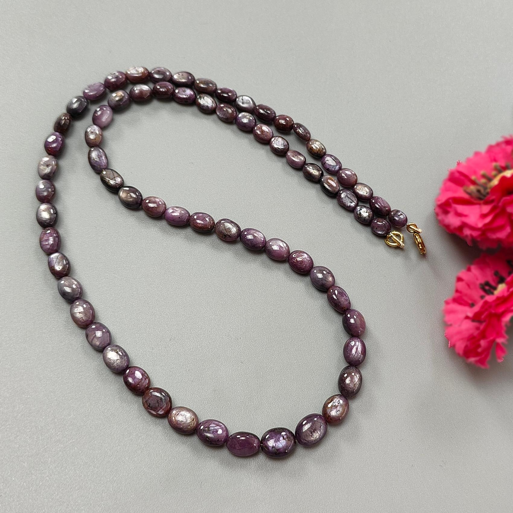 Pink Sapphire Gemstone Beads Necklace: 149.60cts Natural Untreated Raspberry Sheen Sapphire Plain Oval Brass Necklace 6*5mm - 9*8mm 20"