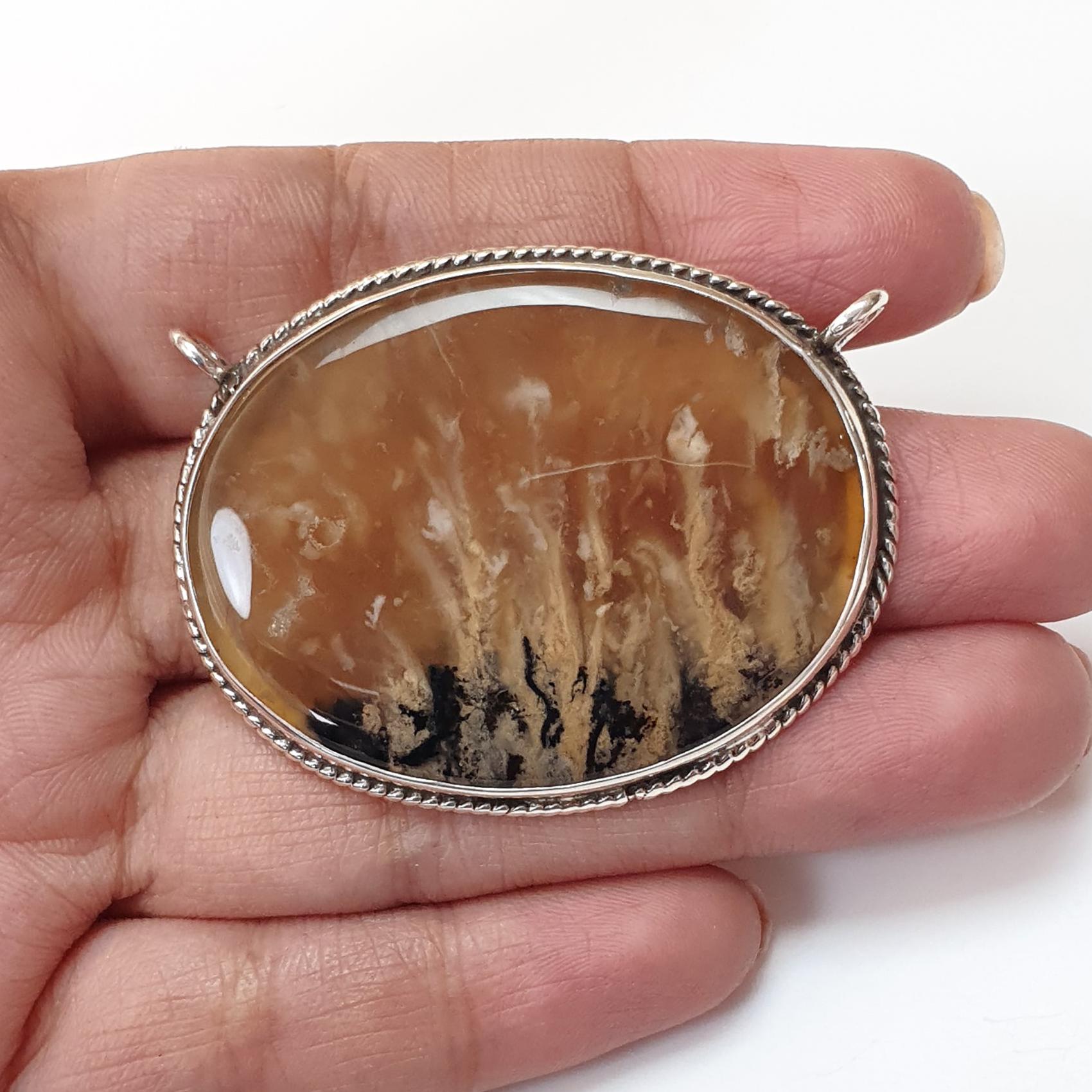 Tiger Dendrite Agate Plain Silver Pendant:15.42gms Natural Untreated Bi-Color Agate Oval 925 Sterling Silver Bezel Set Pendant 2.00"