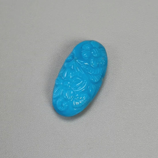 Blue Turquoise Gemstone Carving: 15.70cts Natural Turquoise Hand Carved Oval Shape Cabochon 25*13mm 1pc for Jewelry December Birthstone