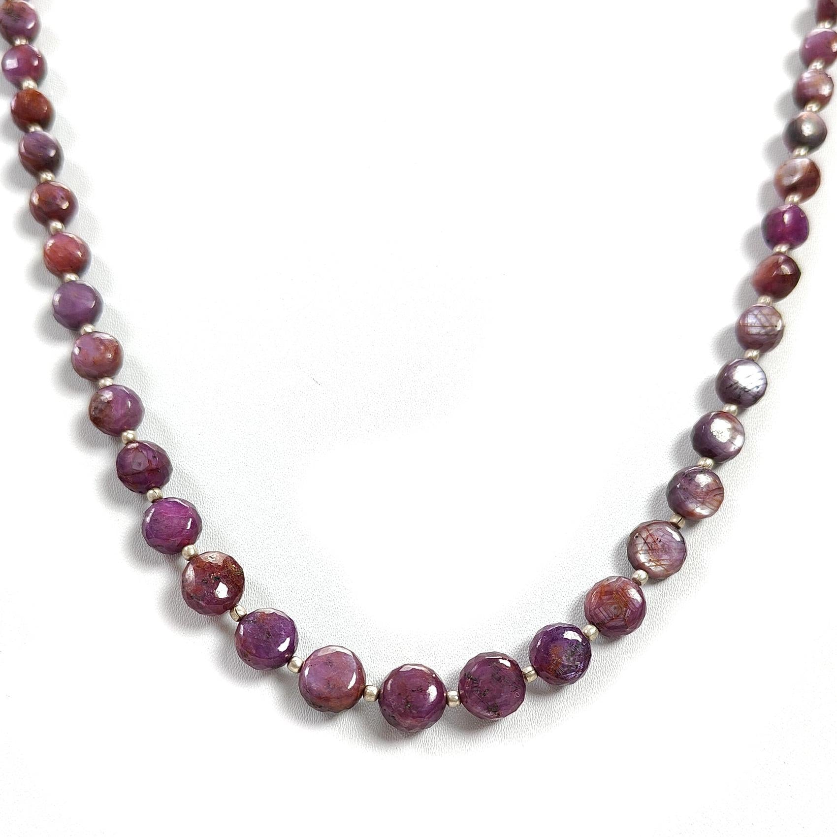 Pink Sapphire Gemstone Beads Necklace: 159.50cts Natural Untreated Raspberry Sapphire Plain Side Faceted Round Brass Necklace 4mm - 9mm 20"