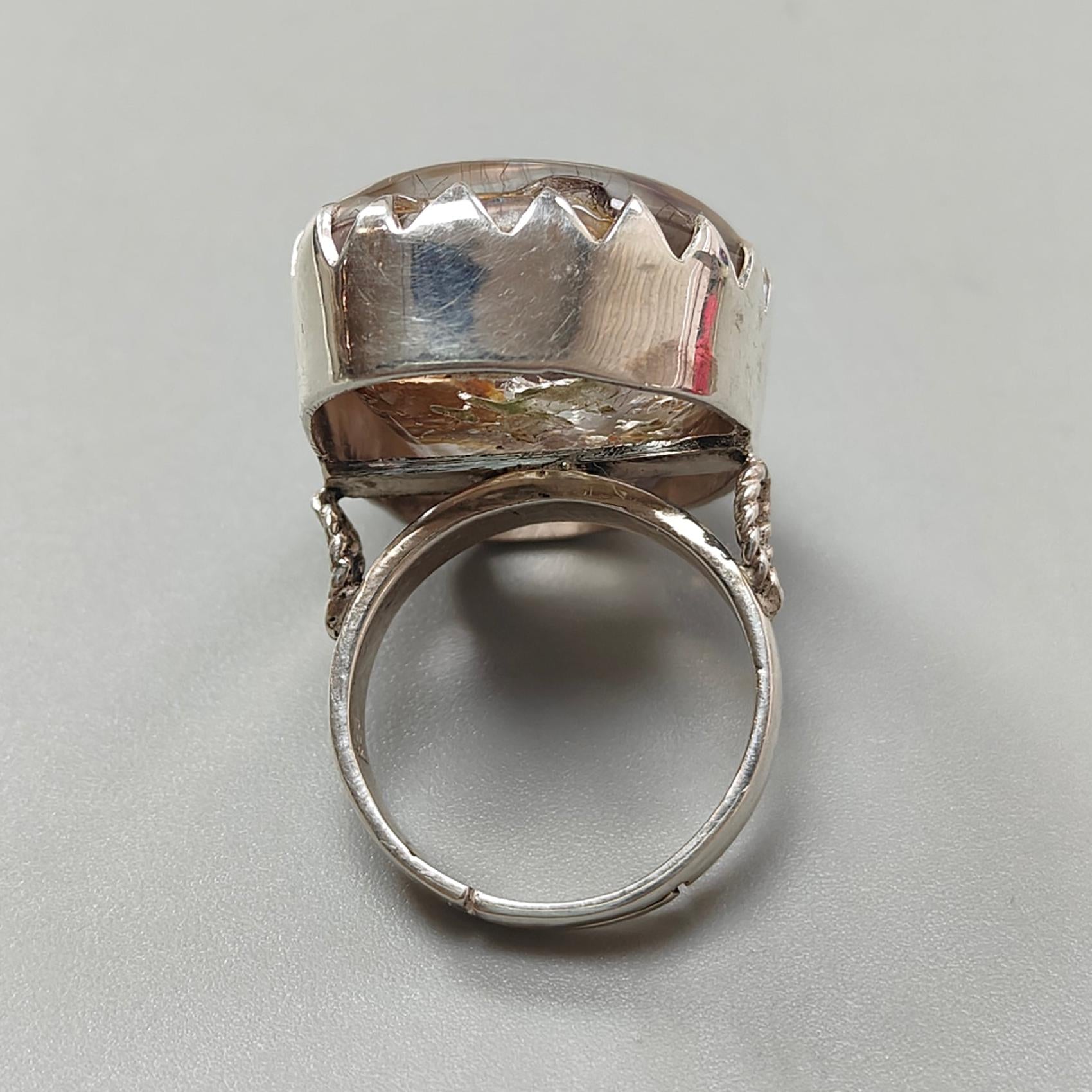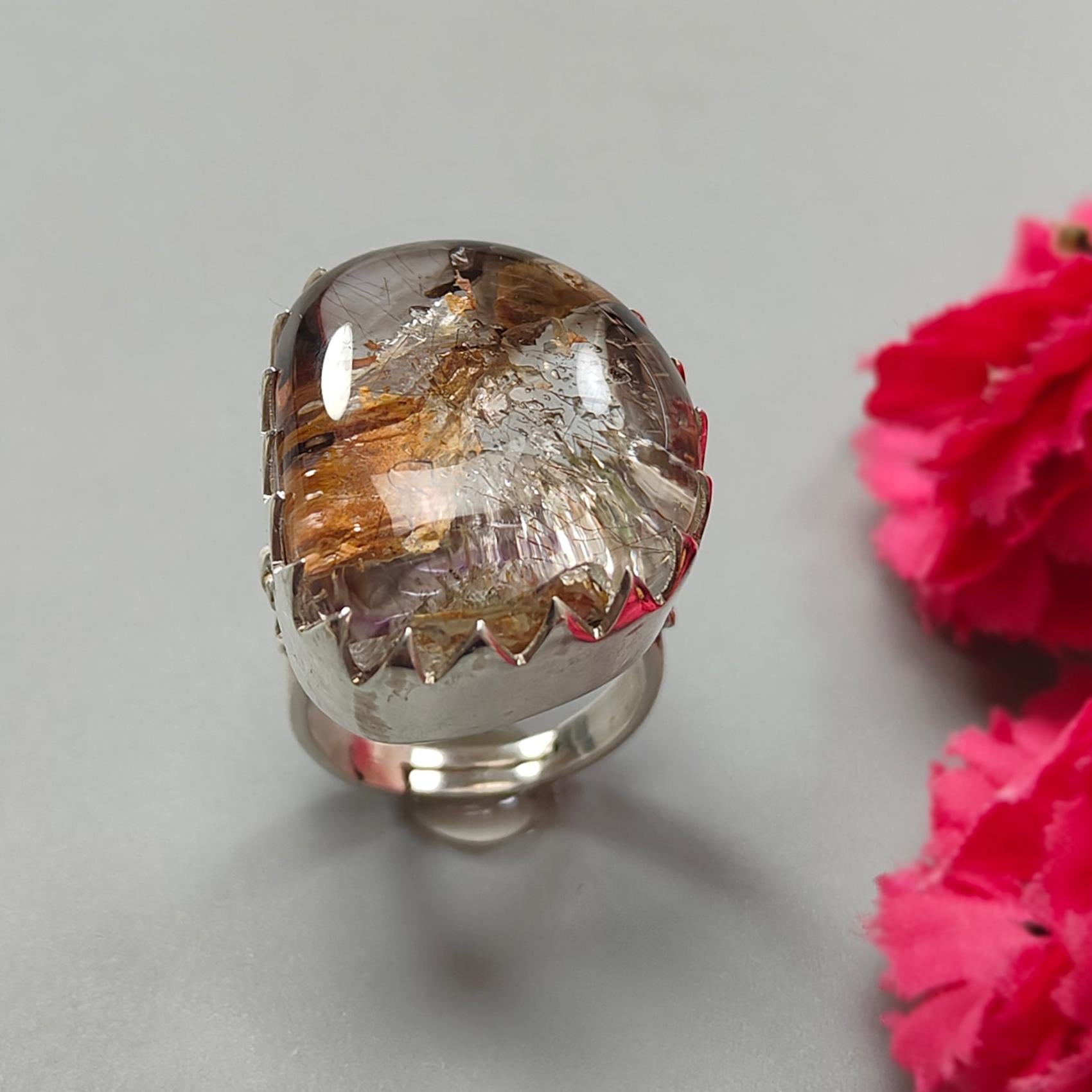 Amethyst Plain Silver Ring: 16.10gms Natural Untreated Super Seven Amethyst Fancy Shape Plain 925 Sterling Silver Bezel Set Adjustable Ring