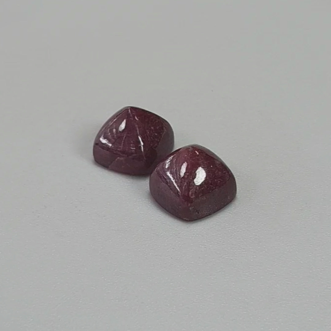 Red Ruby Gemstone Cabochon: 17.60cts Untreated Red Ruby Sugarloaf Shape 10mm 2pcs for Jewelry July Birthstone