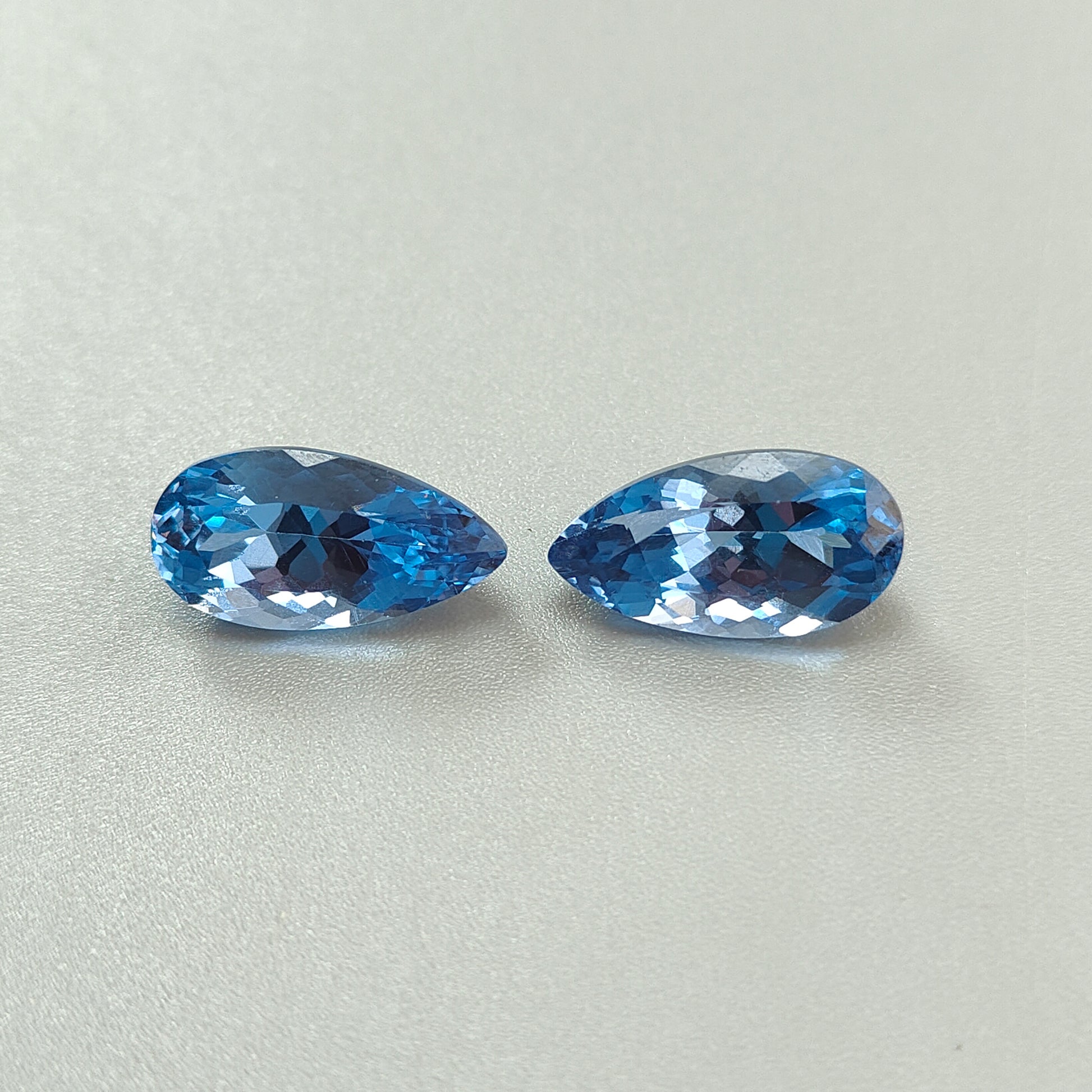 17.60cts Synthetic Manmade Sapphire Gemstone Faceted Cut Pear Shape Pair