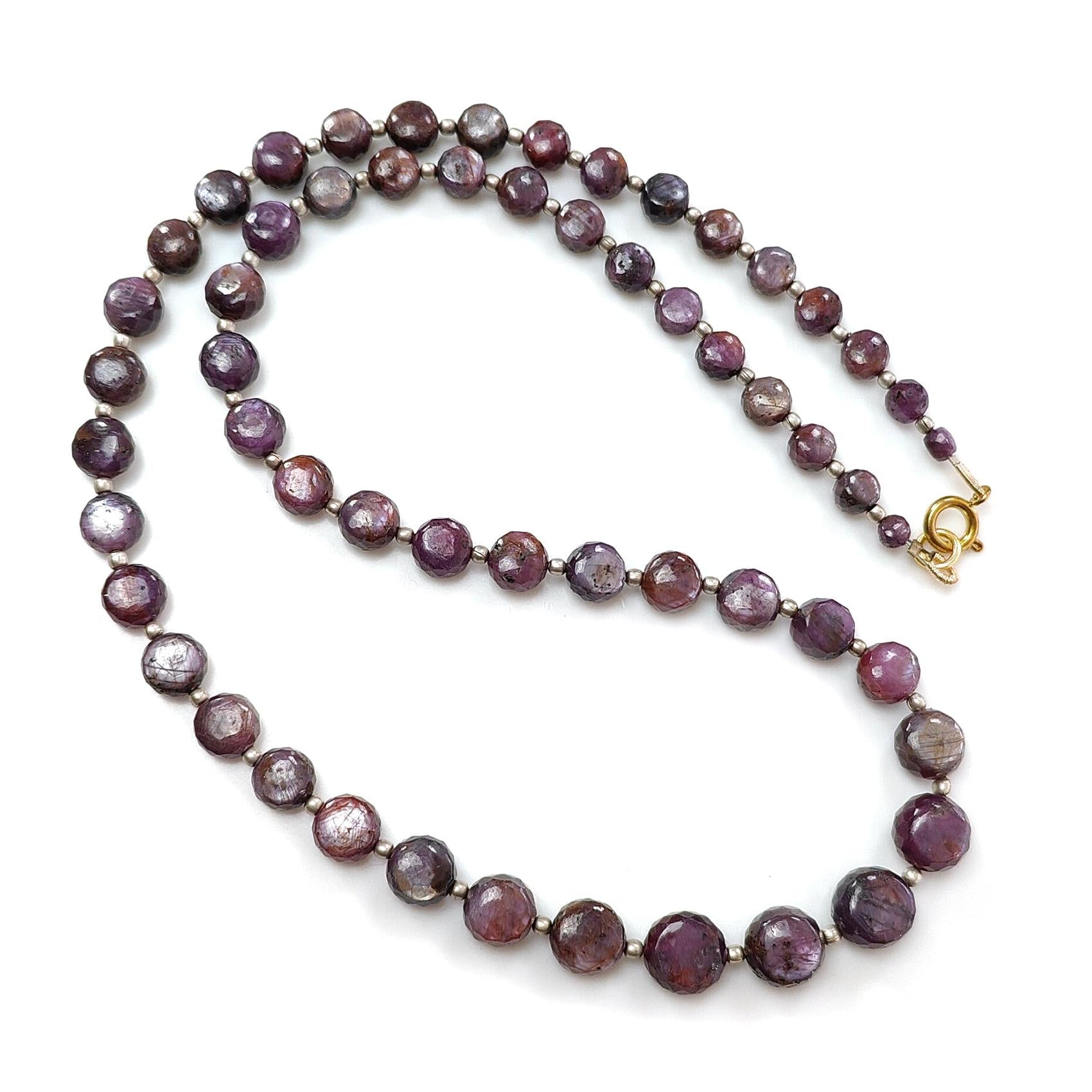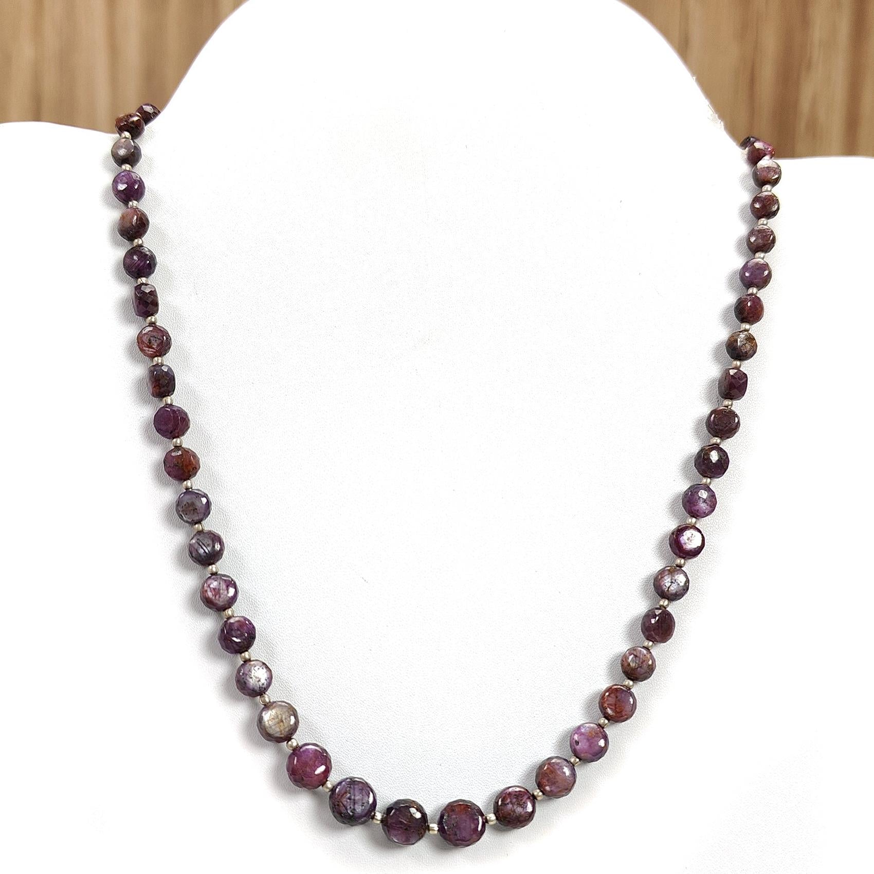 Pink Sapphire Gemstone Beads Necklace: 170.00cts Natural Untreated Raspberry Sapphire Plain Side Faceted Round Brass Necklace 4mm - 9mm 20"