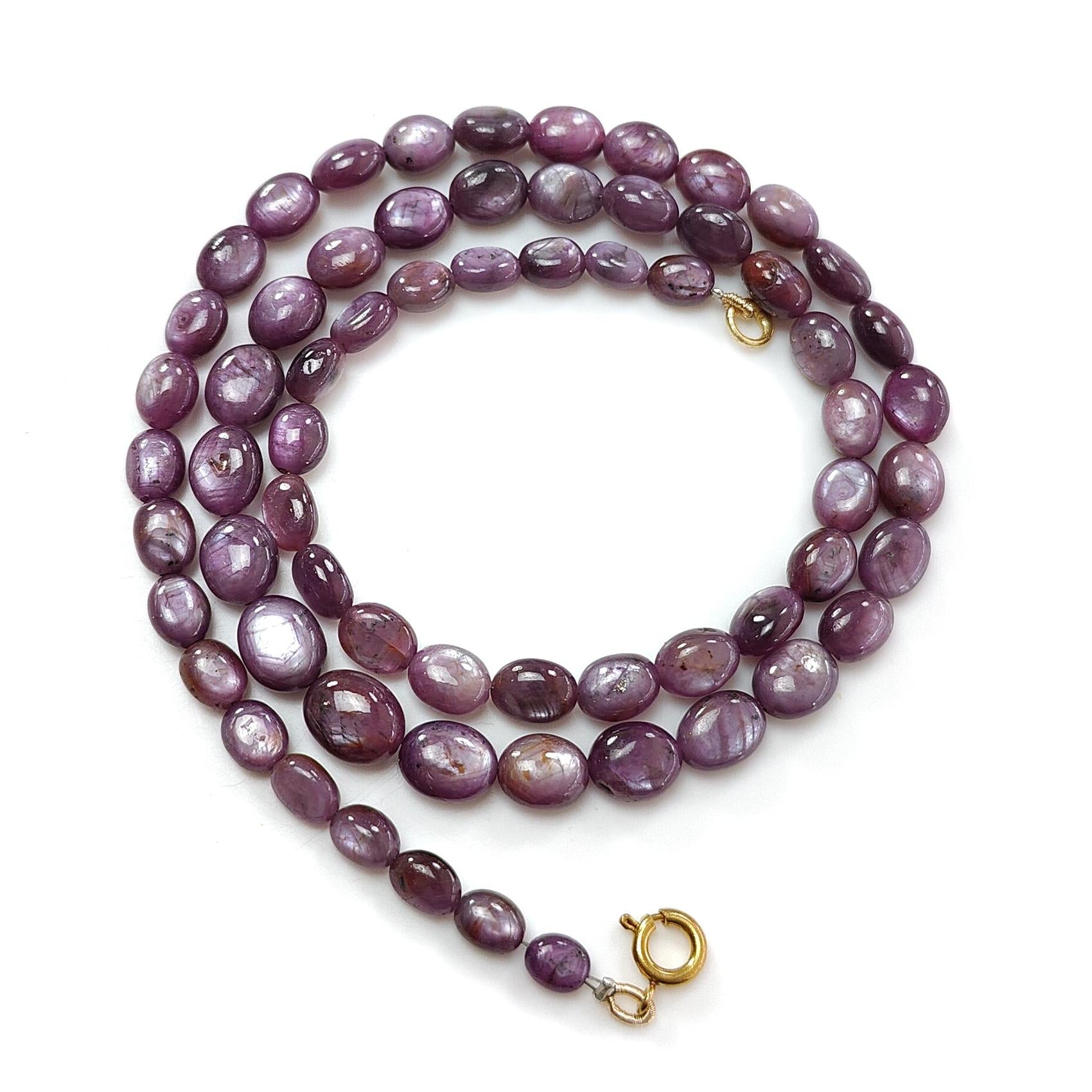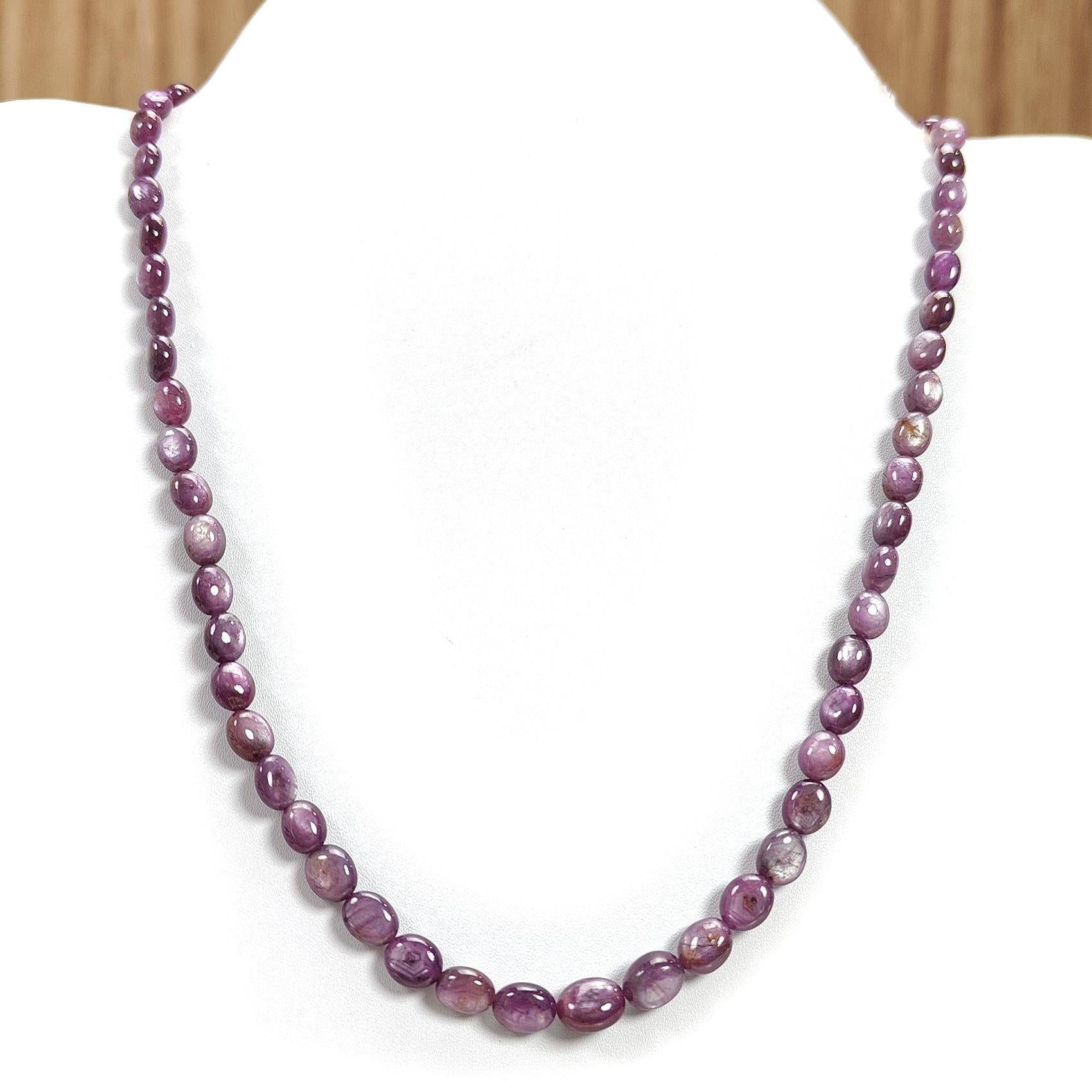 Pink Sapphire Gemstone Beads Necklace: 172.00cts Natural Untreated Raspberry Sheen Sapphire Plain Oval Brass Necklace 7*5mm - 10*8mm 21"