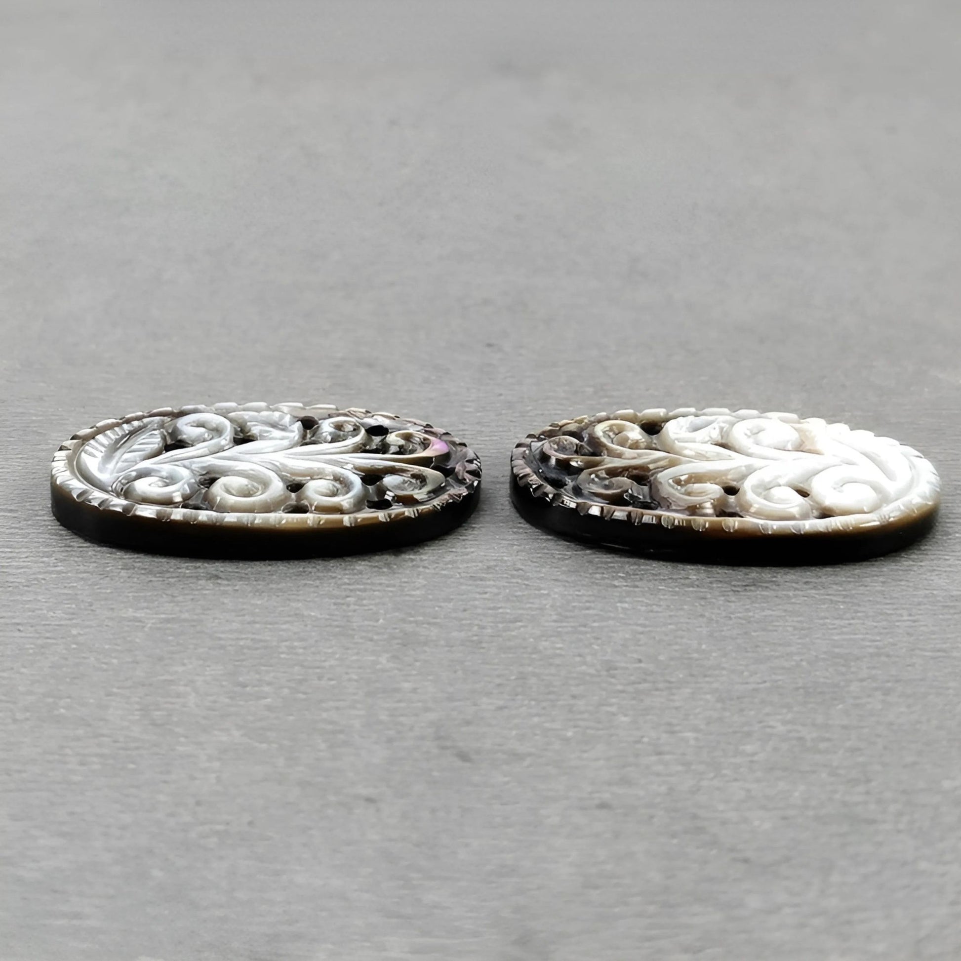 19.75cts Mother Of Pearl Gemstone Carving Natural Untreated Black Oval Shape 25*16mm Pair