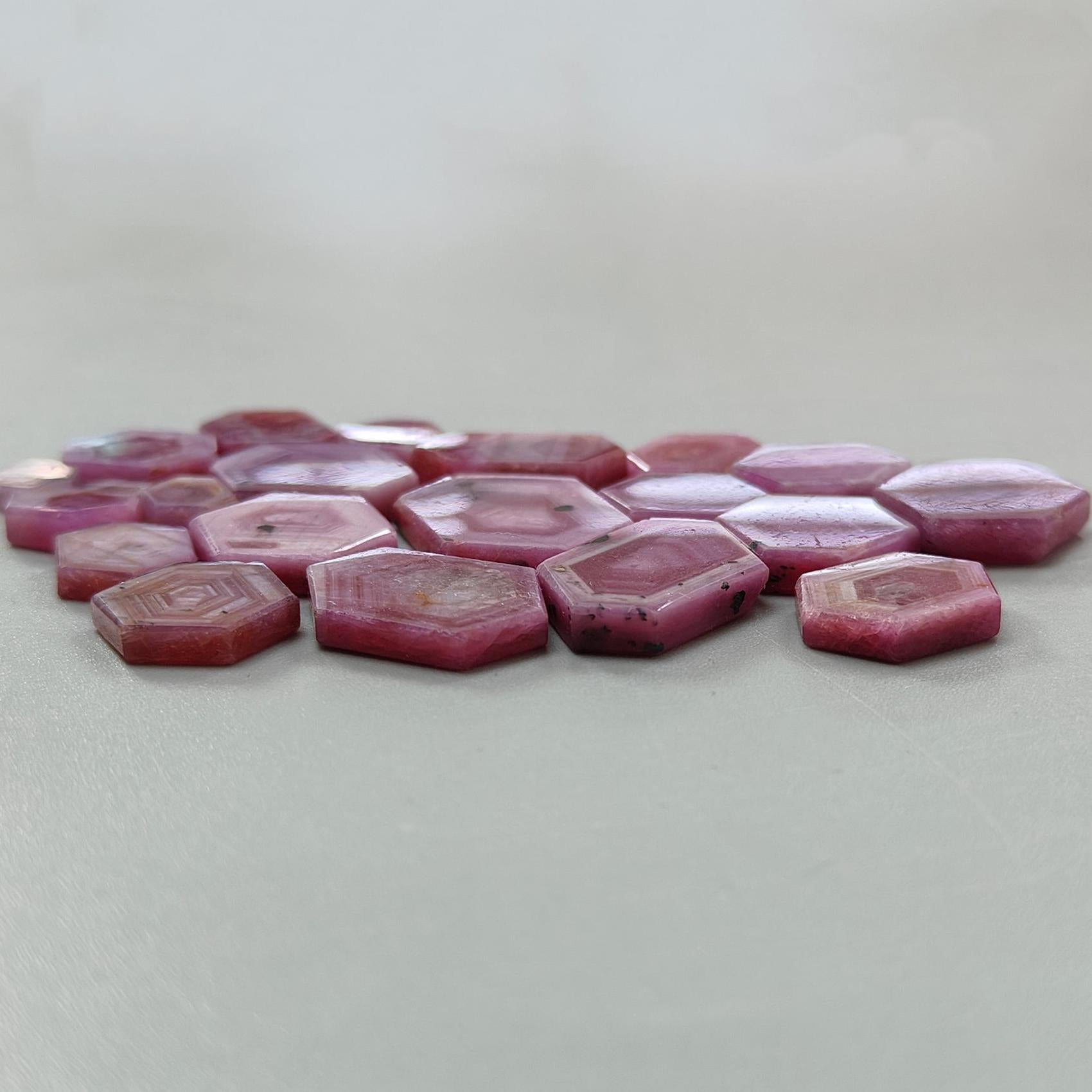 Rosemary Pink Sapphire Gemstone Flat Slices: 195.40cts Natural Untreated Sheen Sapphire Hexagon Shape 8*7mm - 24*17mm 21pcs Lots for Jewelry