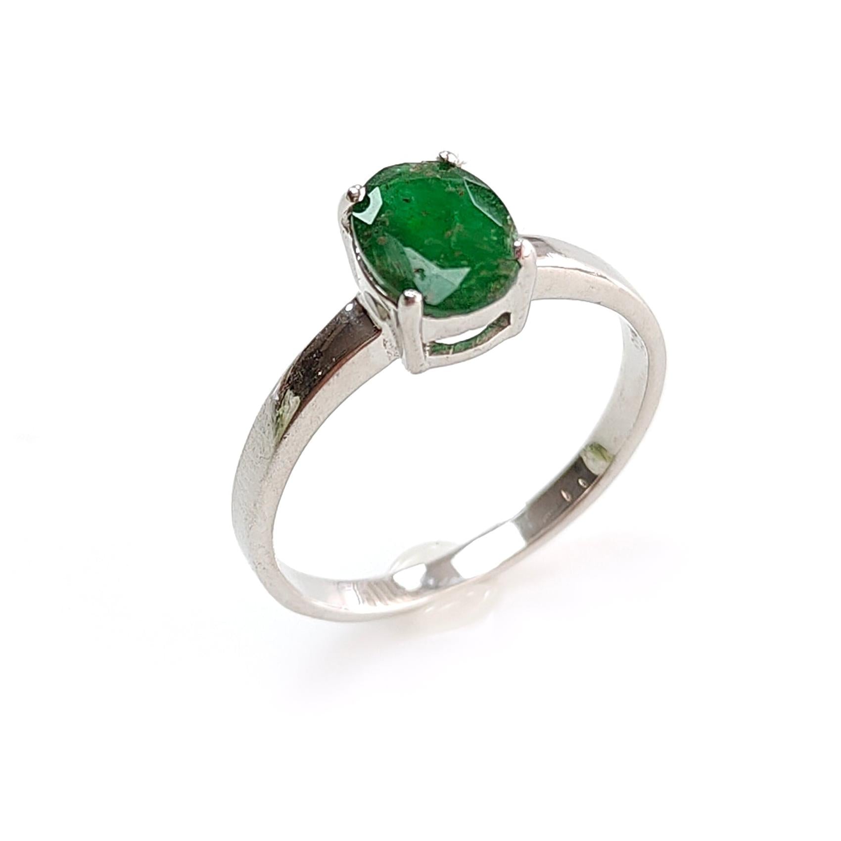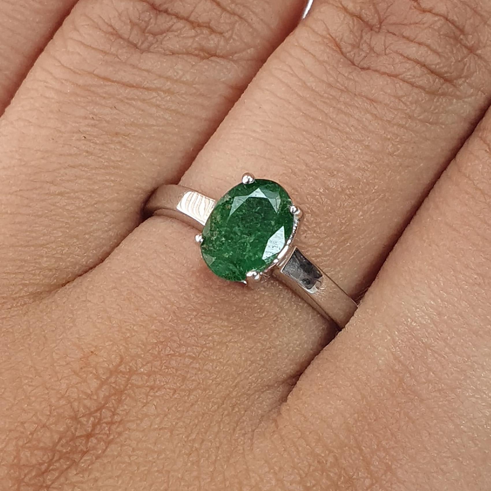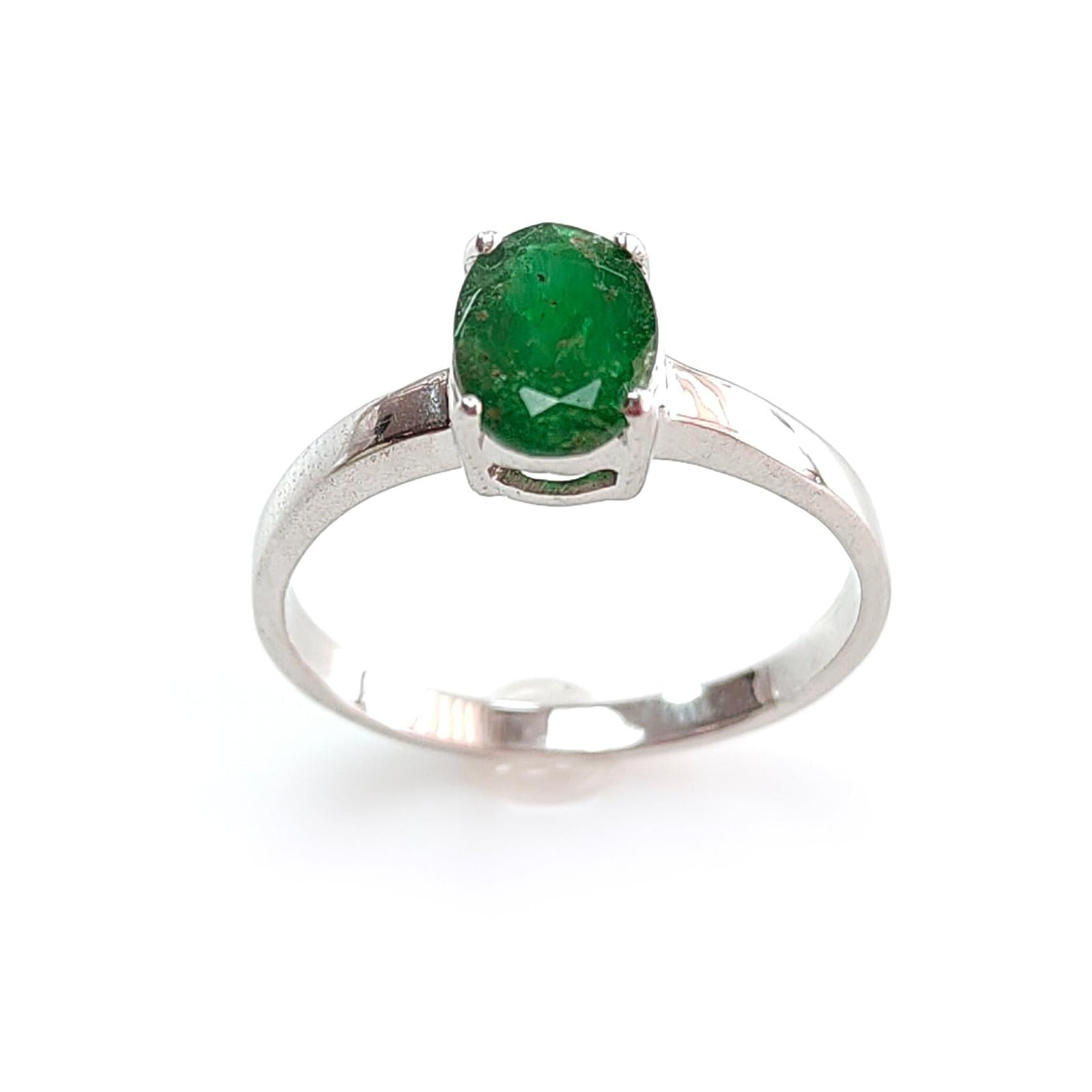 Emerald Faceted Silver Ring: 2.16gms Natural Untreated Emerald Oval Faceted Cut 925 Sterling Silver Prong Set Ring 7.40 US