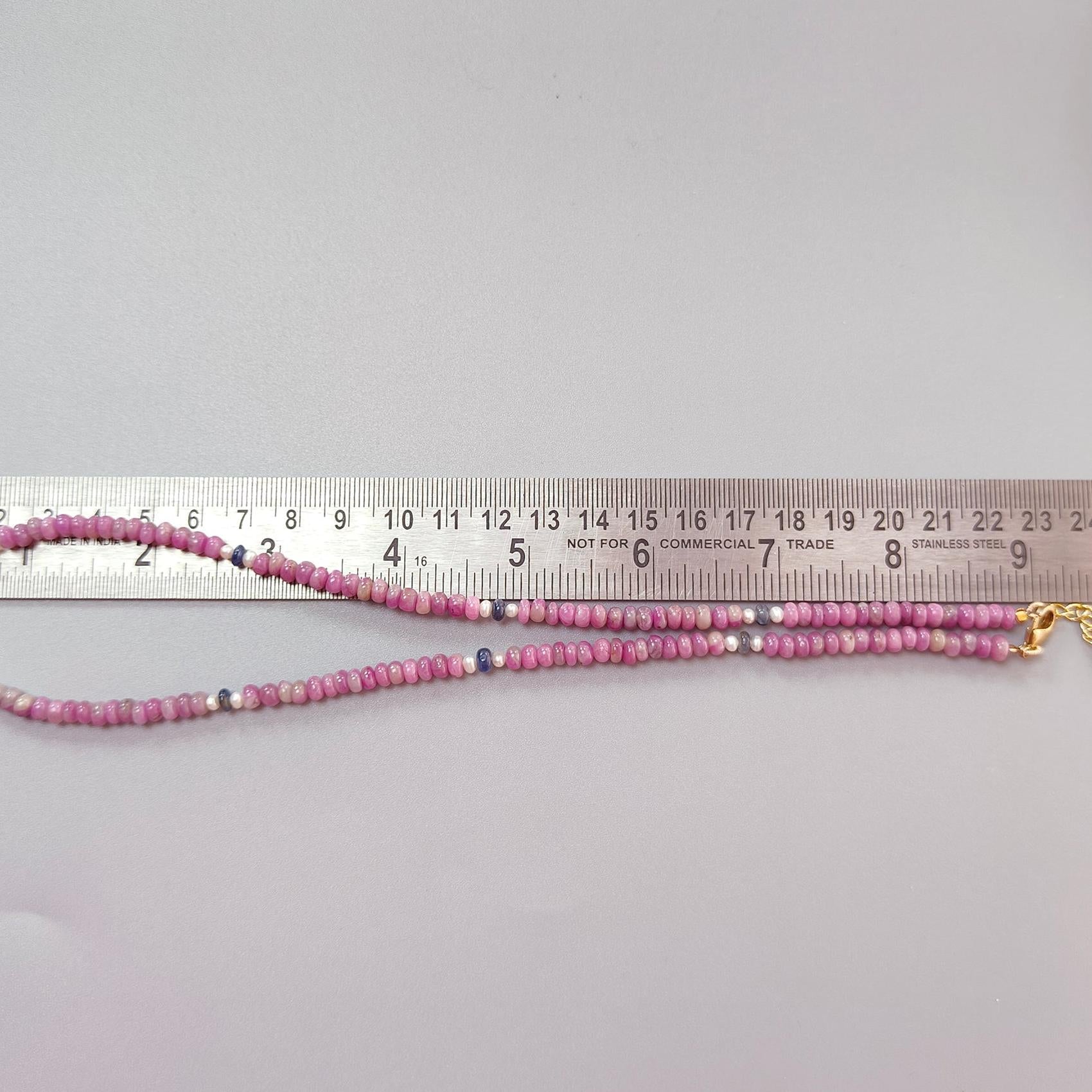 Zoisite Ruby Gemstone Beads Necklace: 21.22gms Natural Ruby, White Pearl & Blue Sapphire Plain Rondelle Brass Necklace 4.5mm - 5mm 18"
