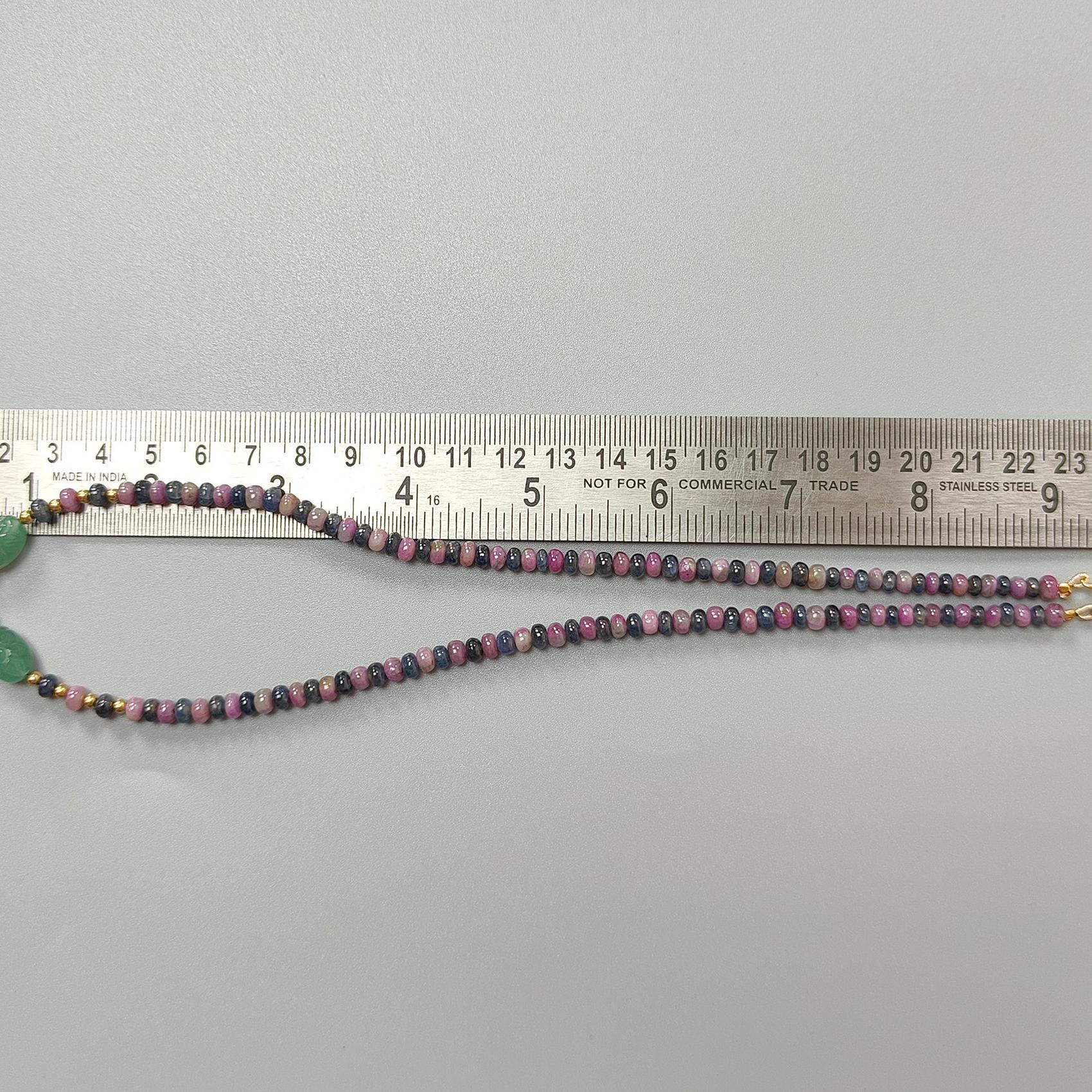 Zoisite Ruby & Blue Sapphire Gemstone Beads Necklace: 24.81gms Natural Quartzite, Blue Chalcedony Plain Rondelle Brass Necklace 4mm-5mm 18"