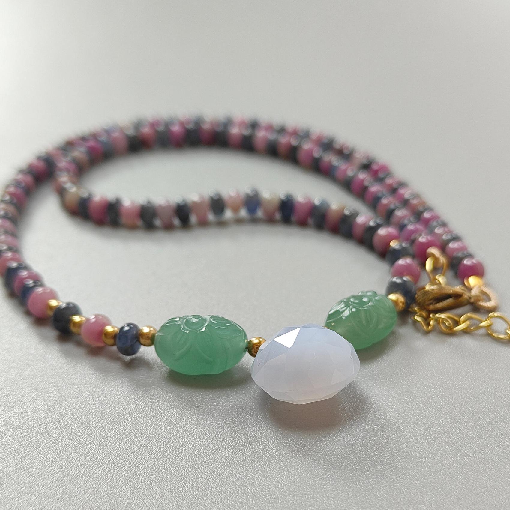 Gemstone Name: Zoisite Ruby, Blue Sapphire, Blue Chalcedony & Green Quartzite