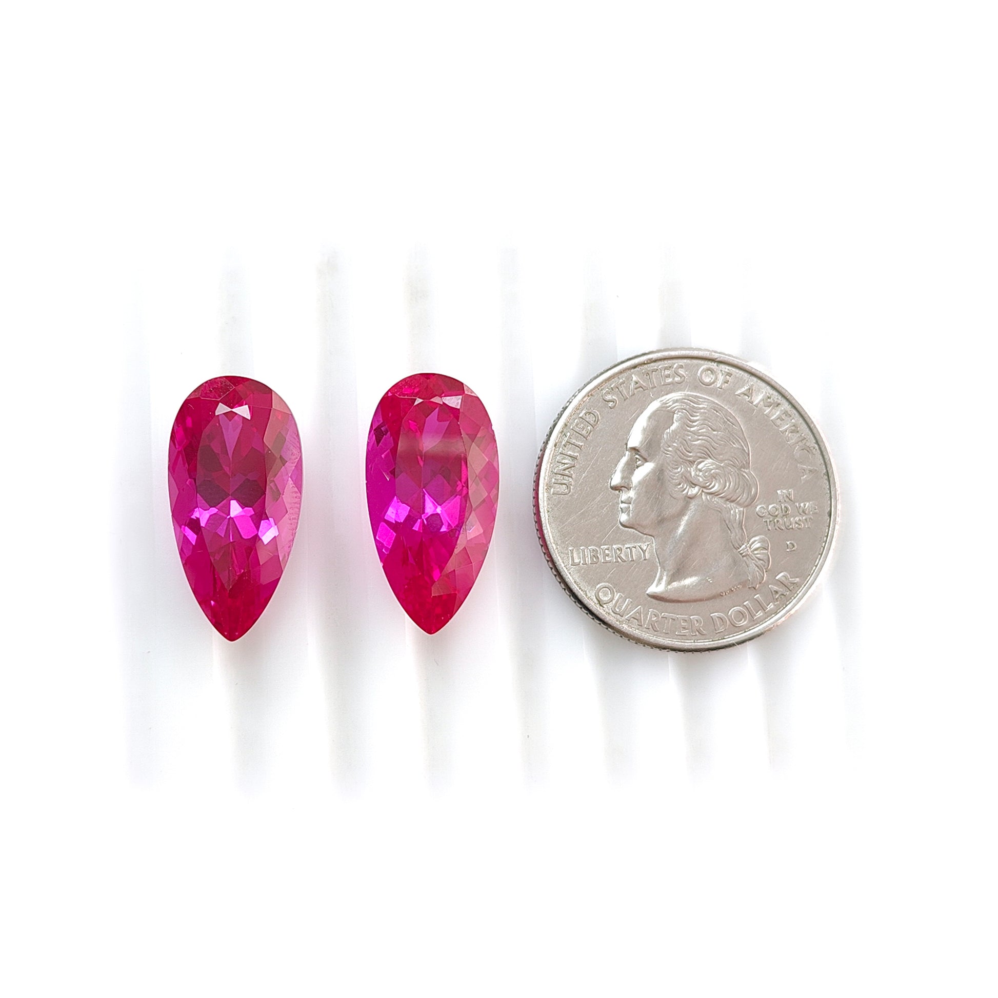 26.50cts Synthetic Manmade Pink Sapphire Gemstone Faceted Cut Pear Shape Pair