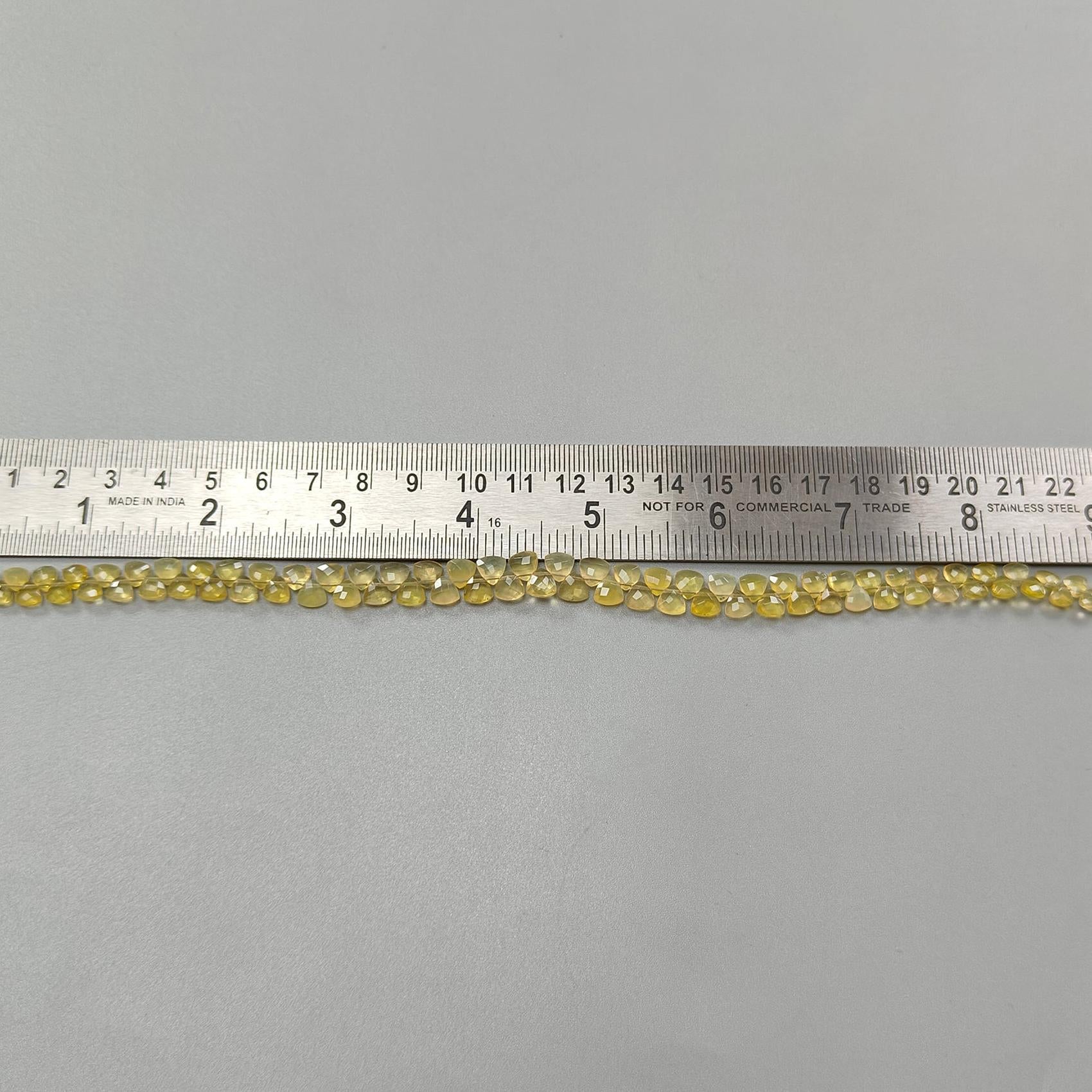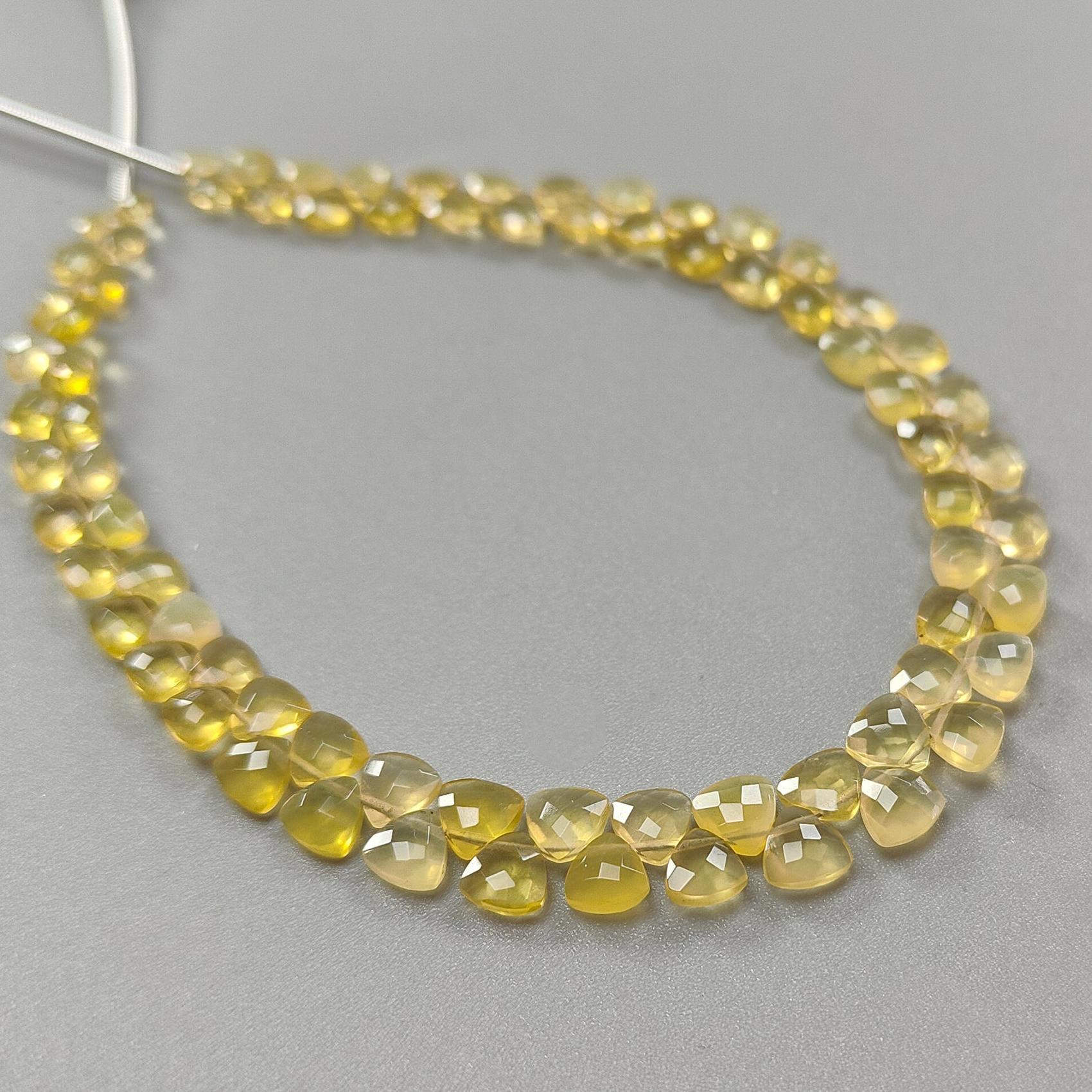 Yellow Opal Faceted Loose Beads: 28.00cts Natural Untreated Opal Gemstone Trillion Shape Both Side Cut Beads 4mm - 6mm 9" Strand