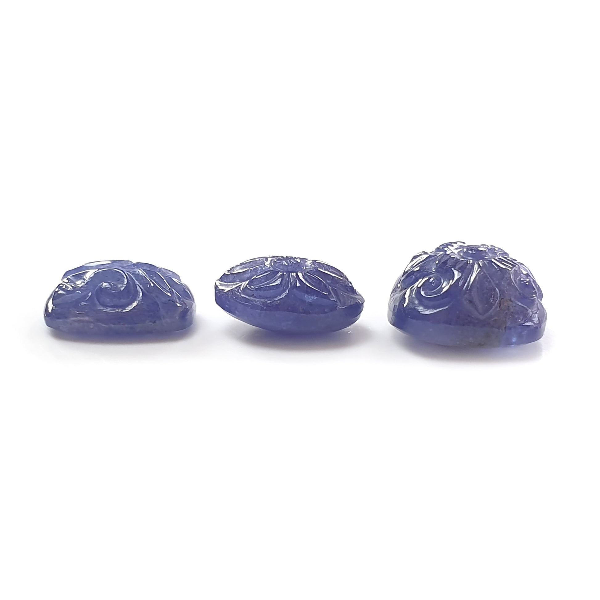 28.00cts Natural Untreated Blue Tanzanite Gemstone Carving Cushion, Oval Shape 3pcs