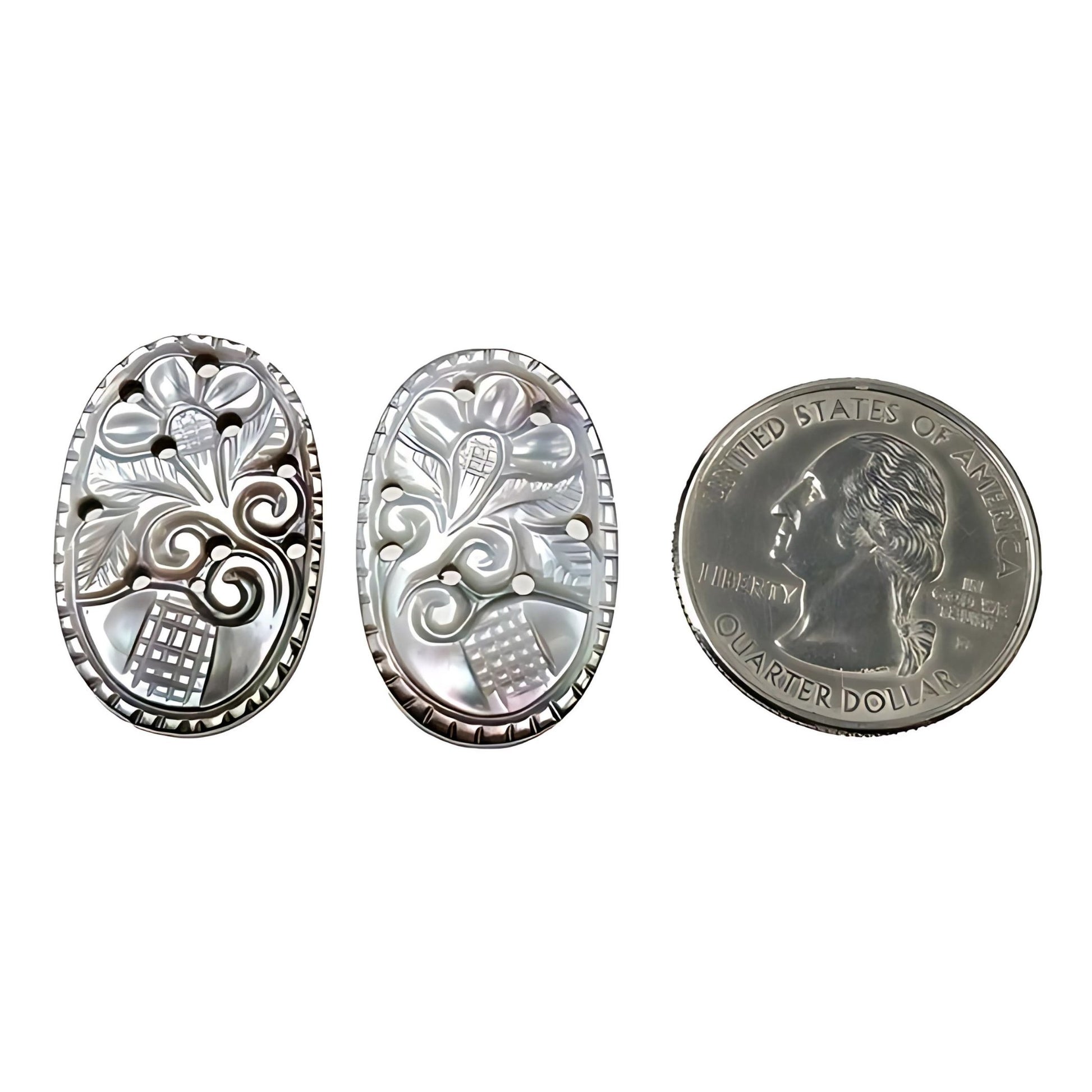 28.20cts Mother Of Pearl Gemstone Carving Natural Untreated White Oval Shape 27*17mm Pair