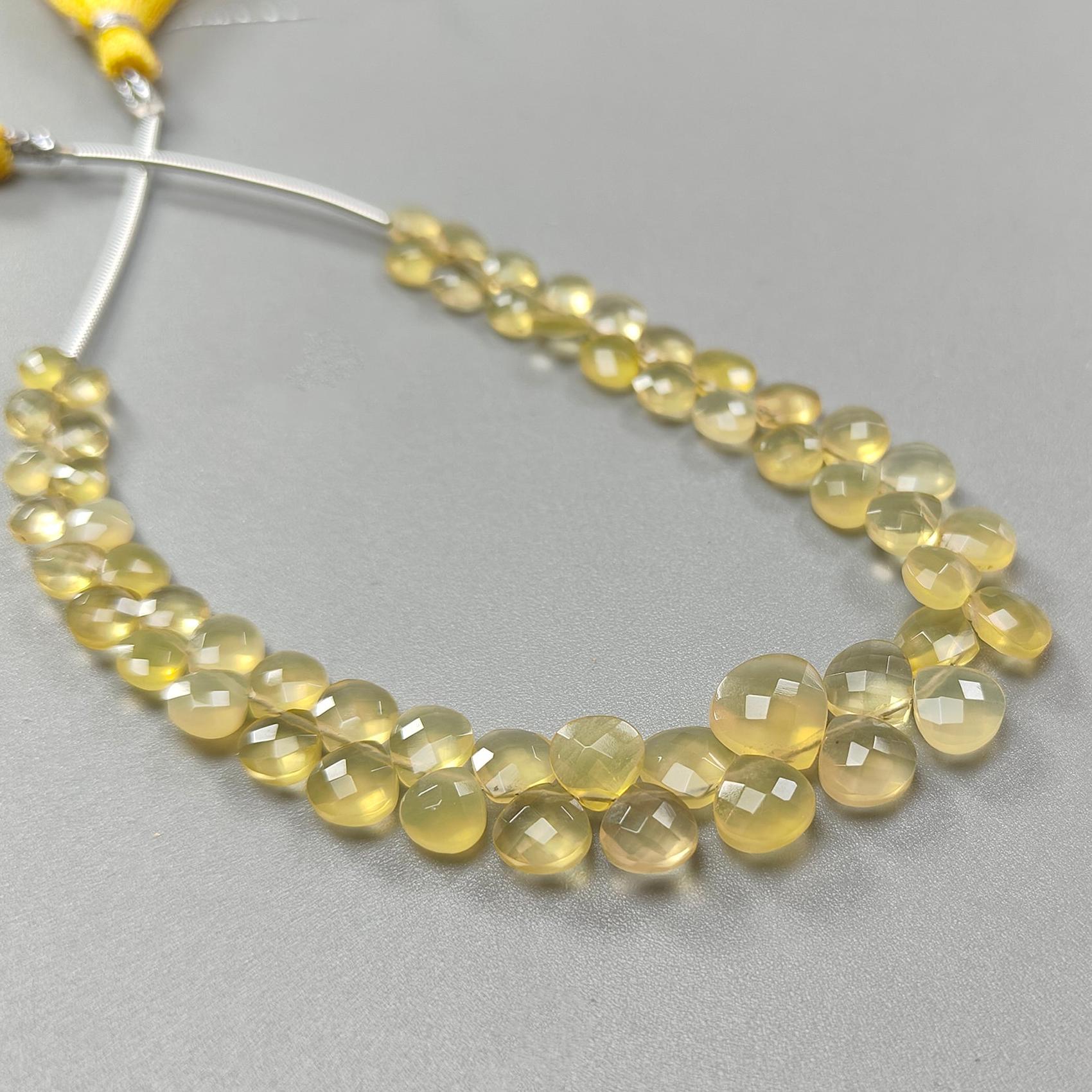 Yellow Opal Faceted Loose Beads: 28.60cts Natural Untreated Opal Gemstone Trillion Shape Both Side Cut Beads 5mm - 9mm 6.75" Strand