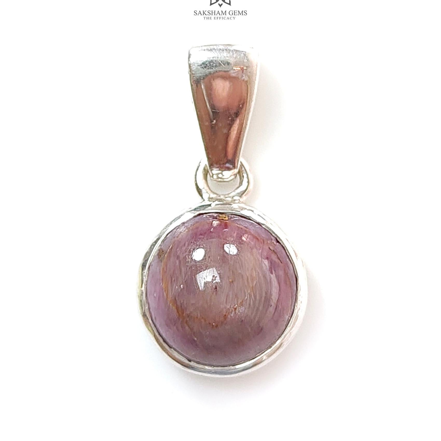 Star Ruby Silver Pendant: 3.58gms Natural Untreated Star Ruby Round Shape Cabochon 925 Sterling Silver Bezel Set Pendant 1"