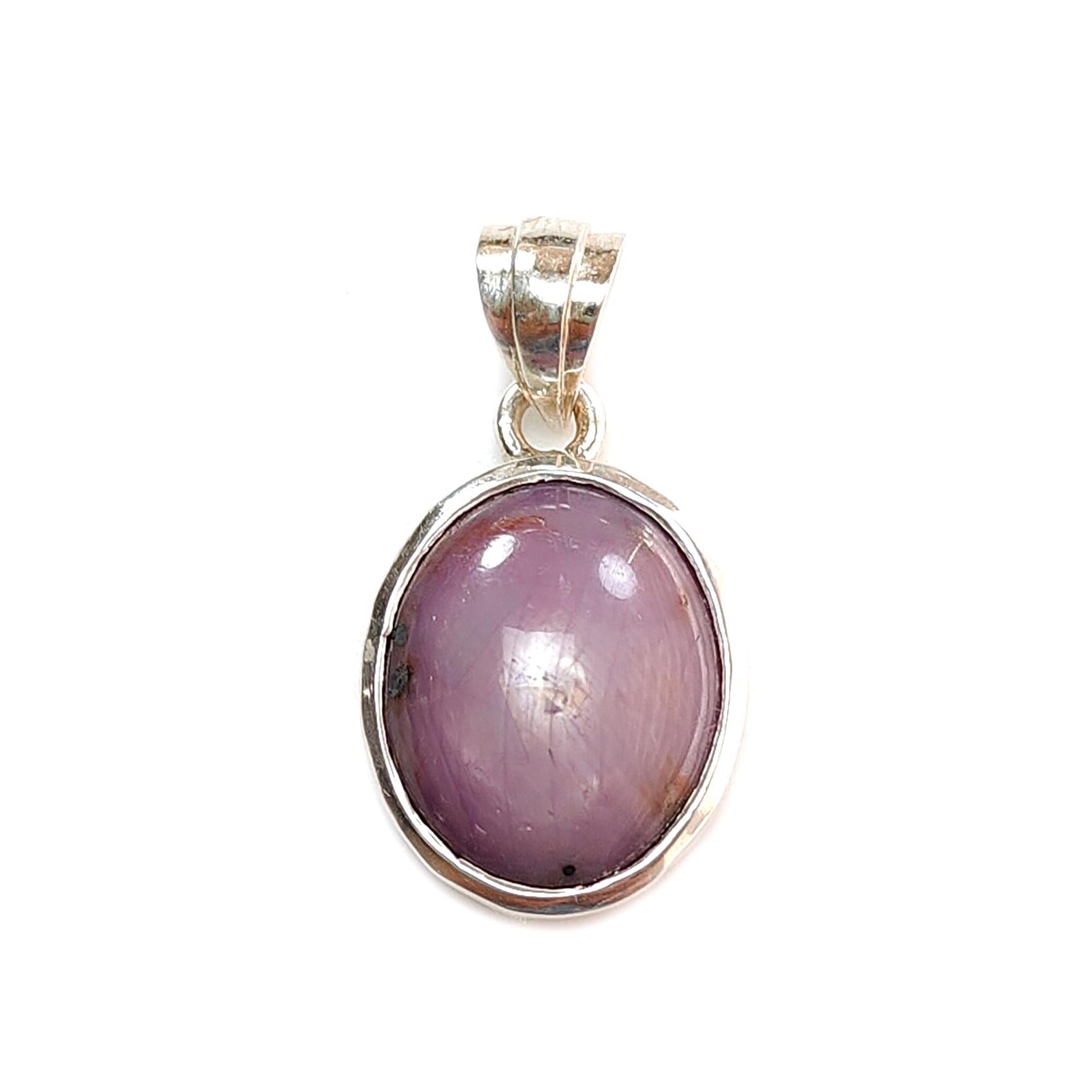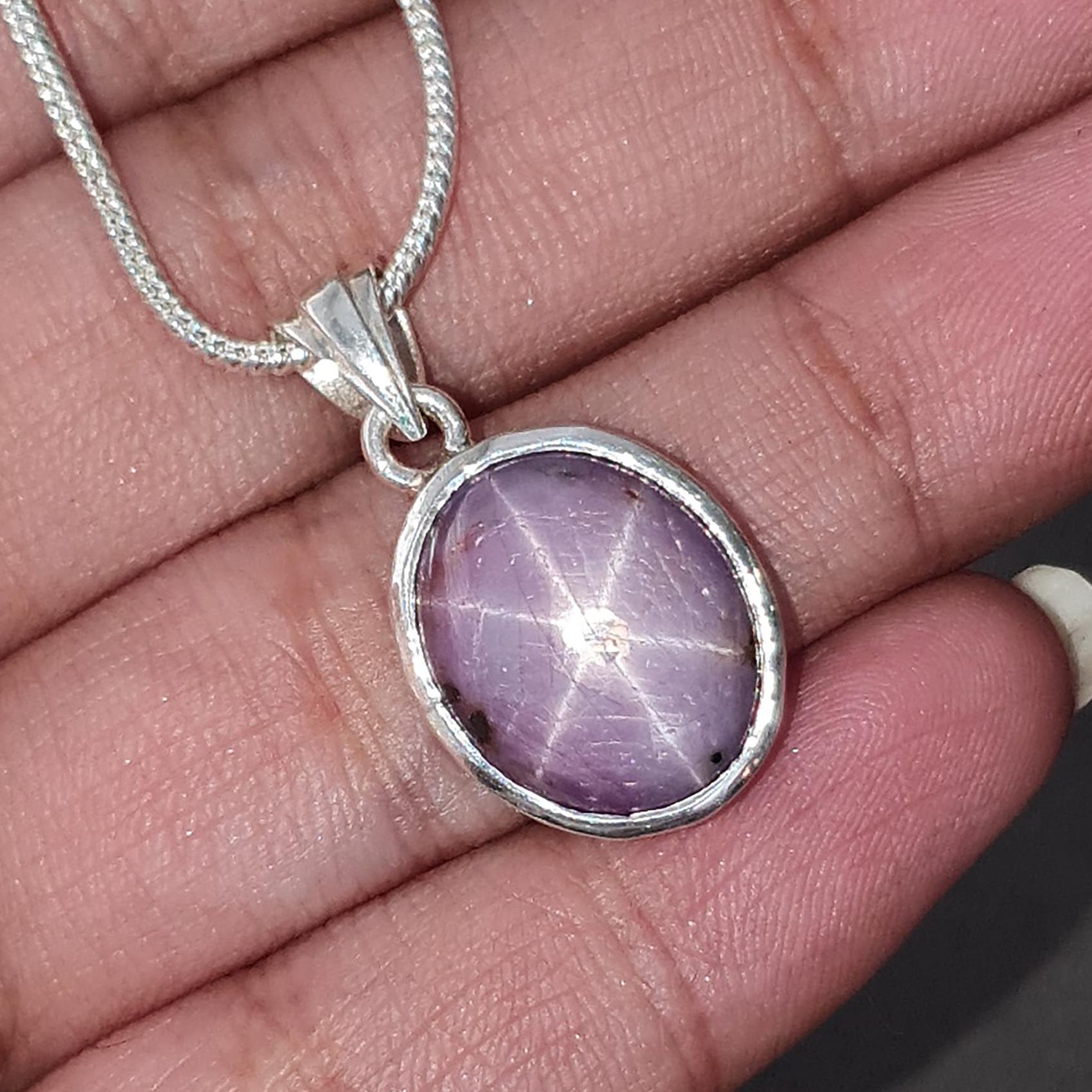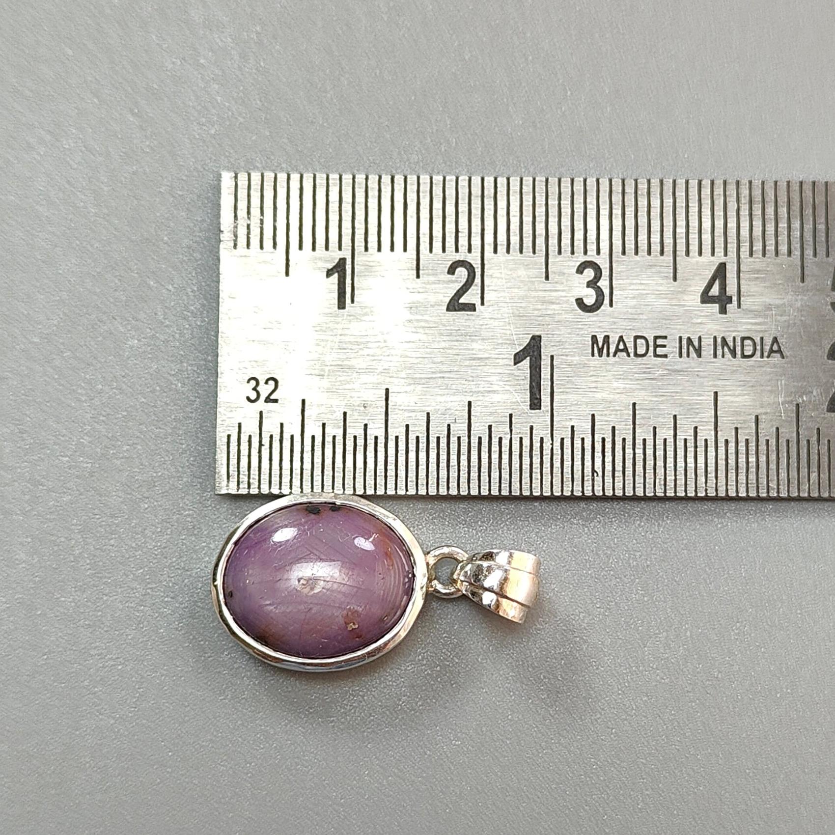 Star Ruby Silver Pendant: 3.87gms Natural Untreated Star Ruby Oval Shape Cabochon 925 Sterling Silver Bezel Set Pendant 1"