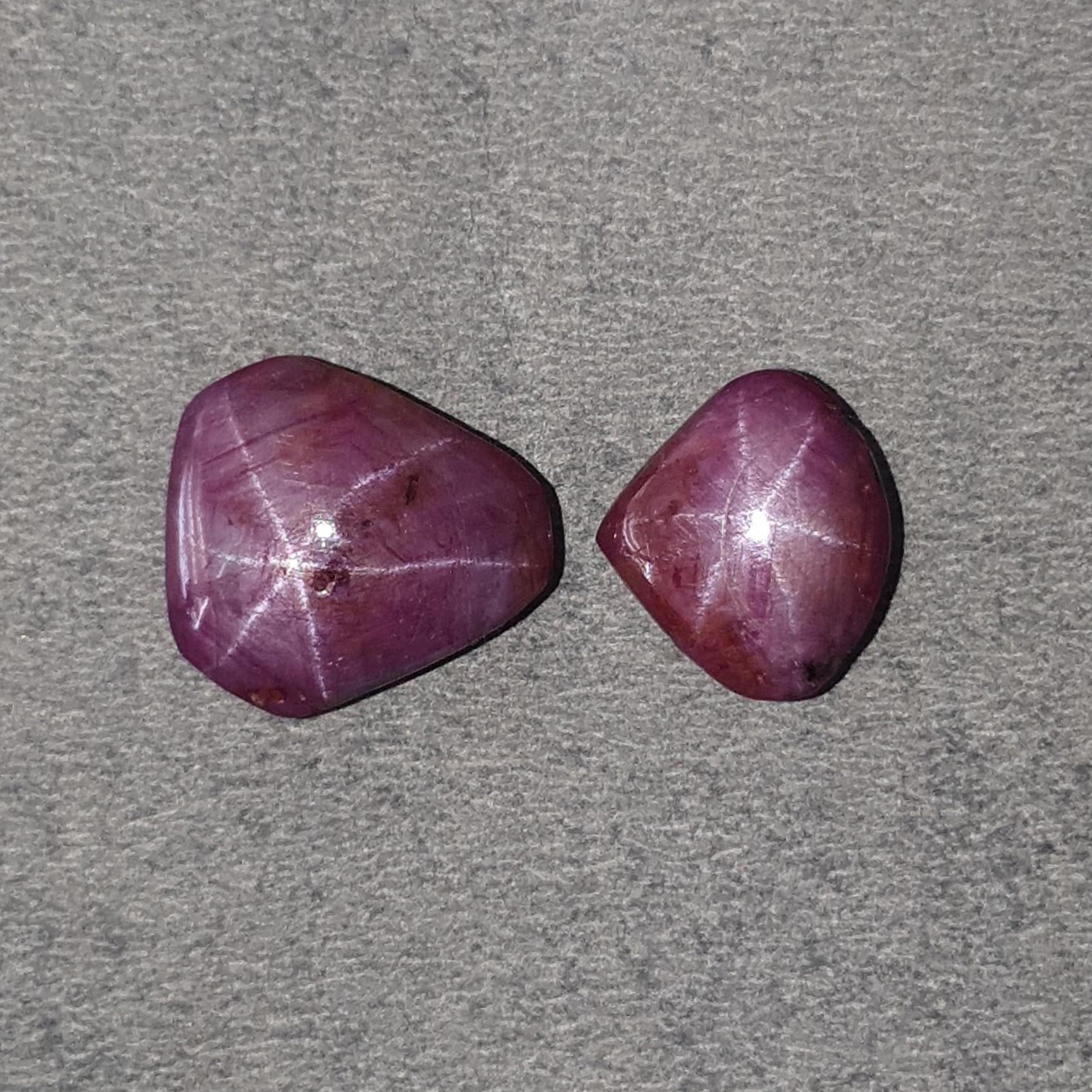 Star Ruby Gemstone Cabochon: 33.50cts Natural Untreated Unheated 6Ray Star Ruby Fancy Shape 13*15mm - 17*16mm 2pcs Set July Birthstone