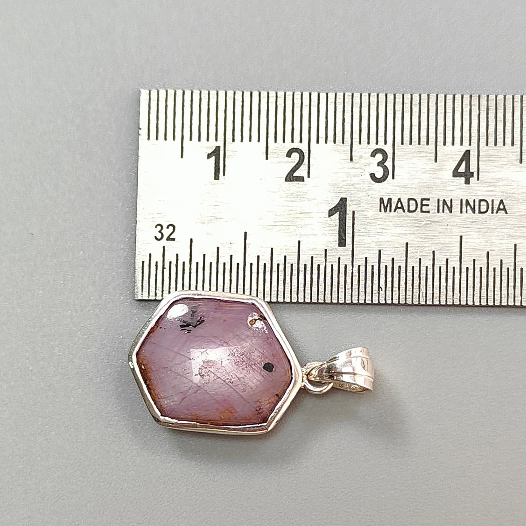 Star Ruby Silver Pendant: 4.05gms Natural Untreated Both Side Star Ruby Hexagon Plain Briolette 925 Sterling Silver Bezel Set Pendant 1.30"