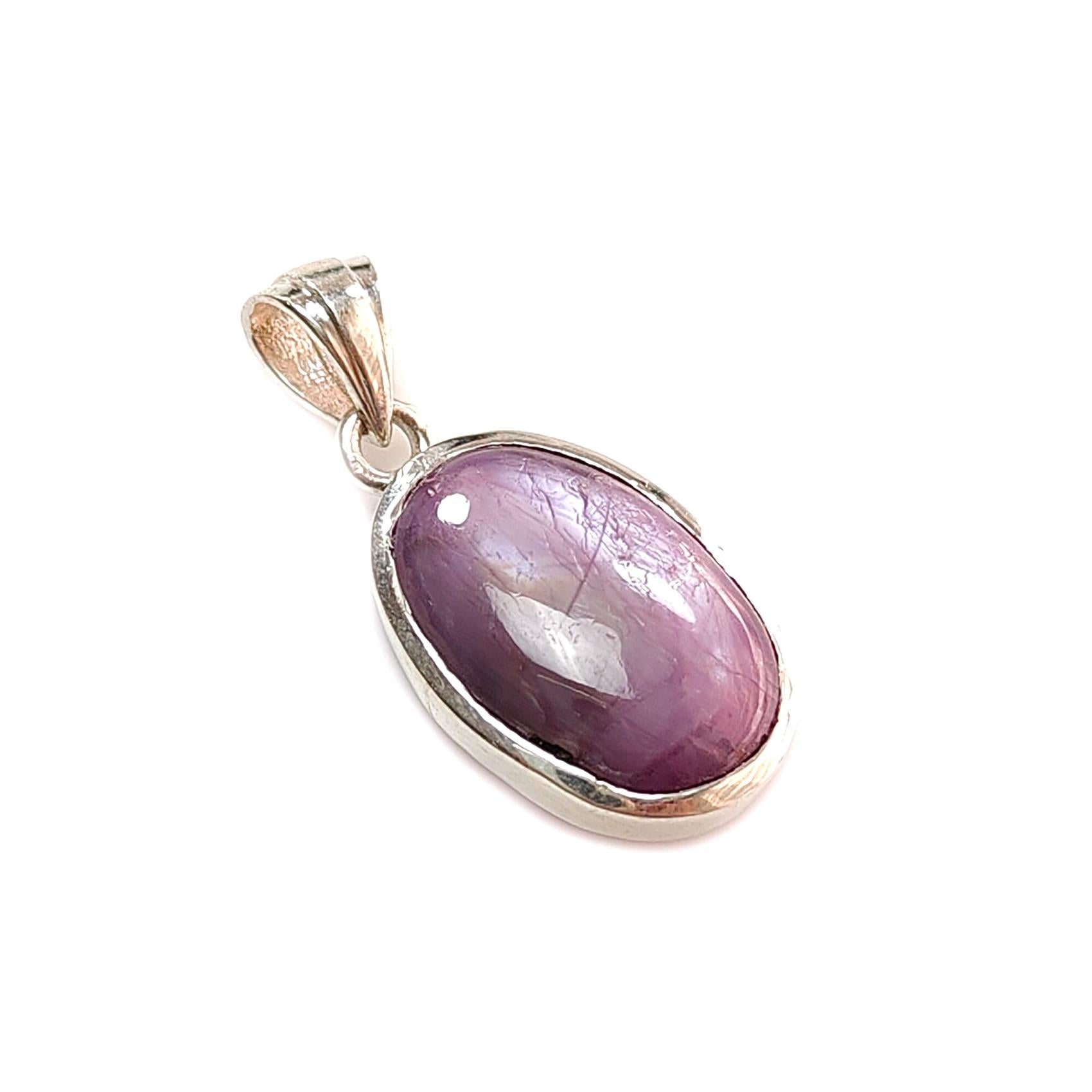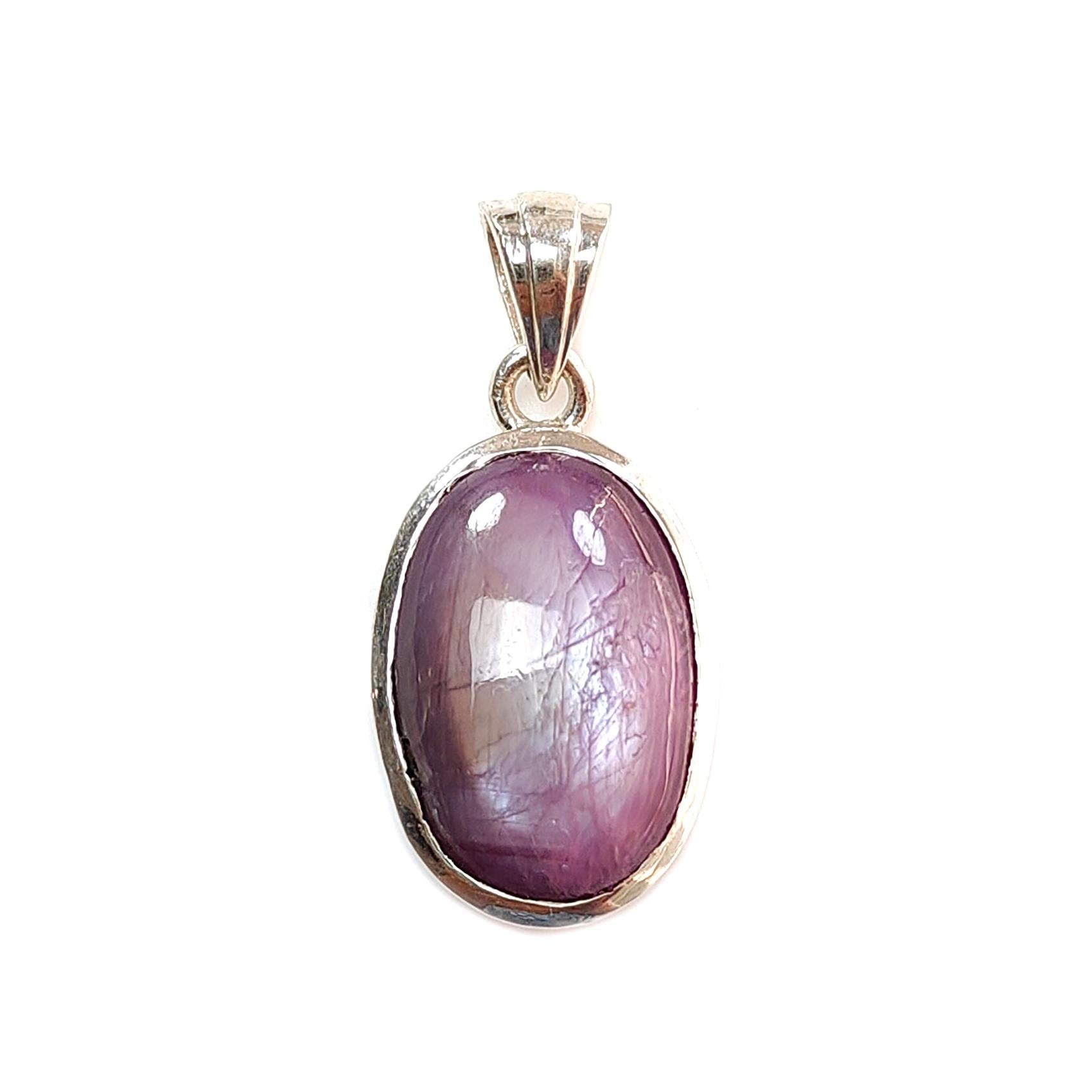 Star Ruby Silver Pendant: 4.47gms Natural Untreated Both Side Star Ruby Oval Shape Cabochon 925 Sterling Silver Bezel Set Pendant 1.30"