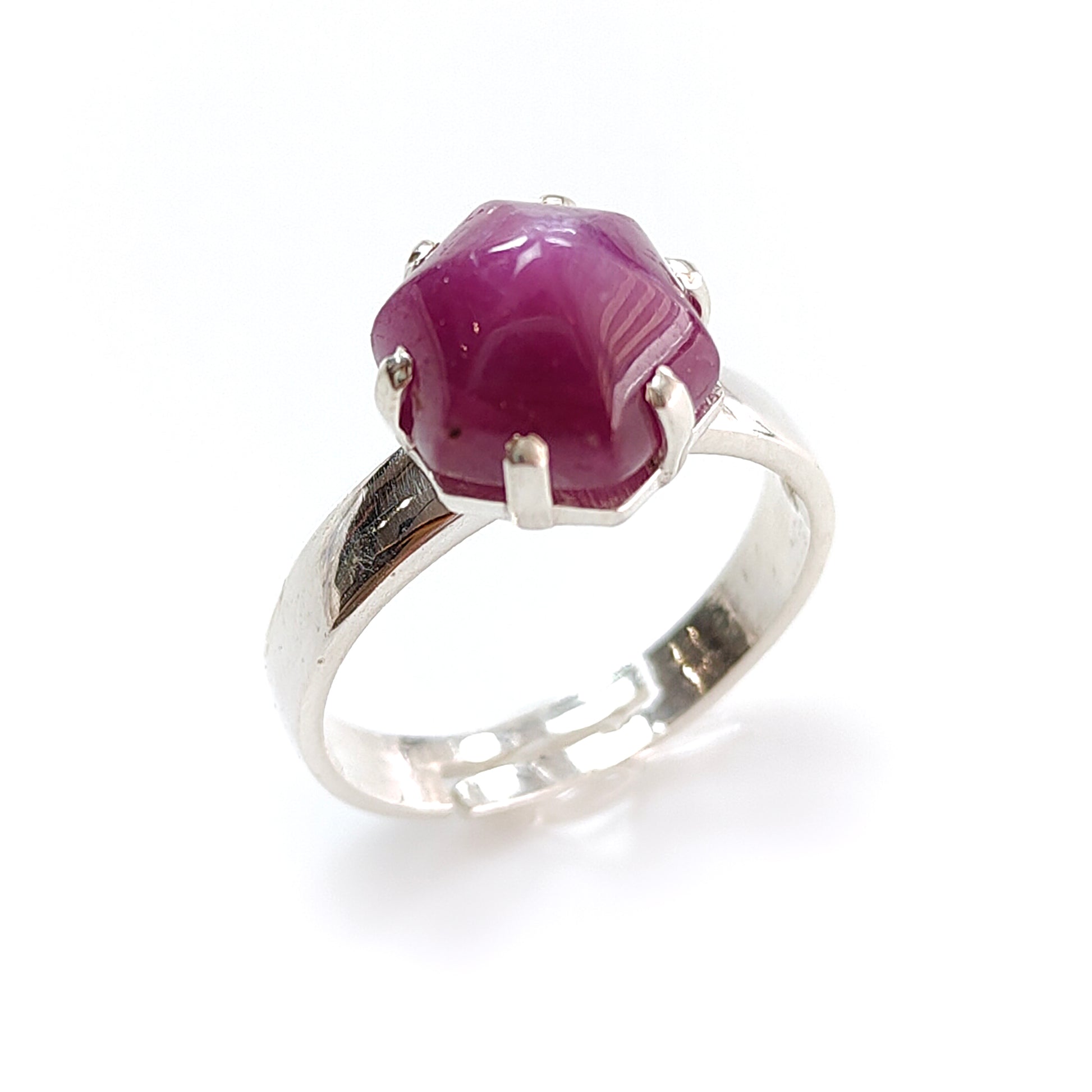 Raspberry Purple Ruby Sugar Loaf Ring: 4.76gms Natural Untreated Sheen Ruby Cabochon 925 Sterling Silver Prong Set Adjustable Ring