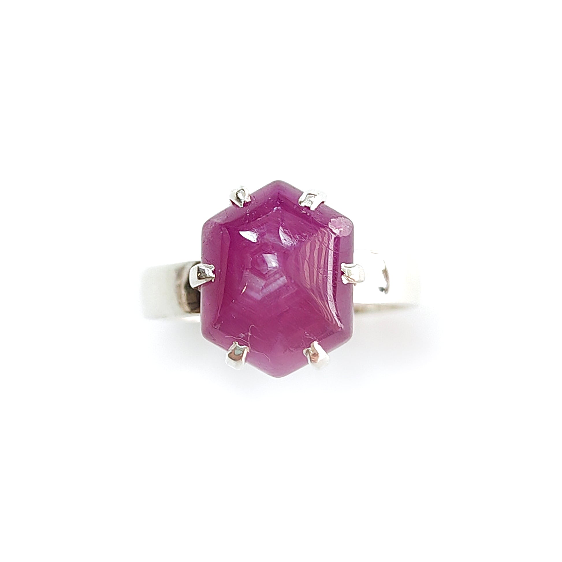 Ruby Cabochon Sugar Loaf Ring: 4.99gms Natural Untreated Sheen Ruby Cabochon 925 Sterling Silver Prong Set Adjustable Ring