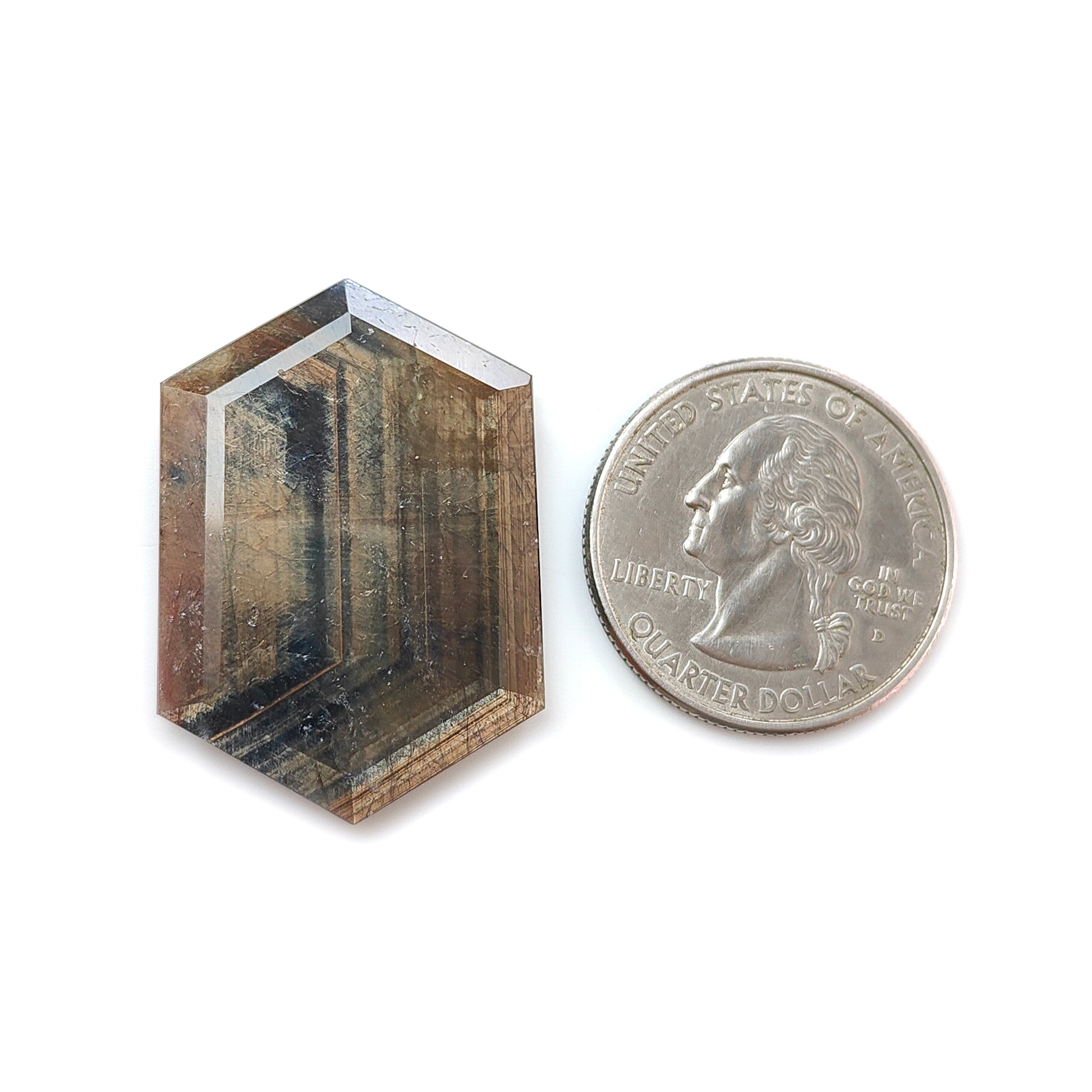 42.85cts Golden Chocolate Sapphire Natural Untreated Faceted Cut Hexagon Shape 34*23.5mm 1pc