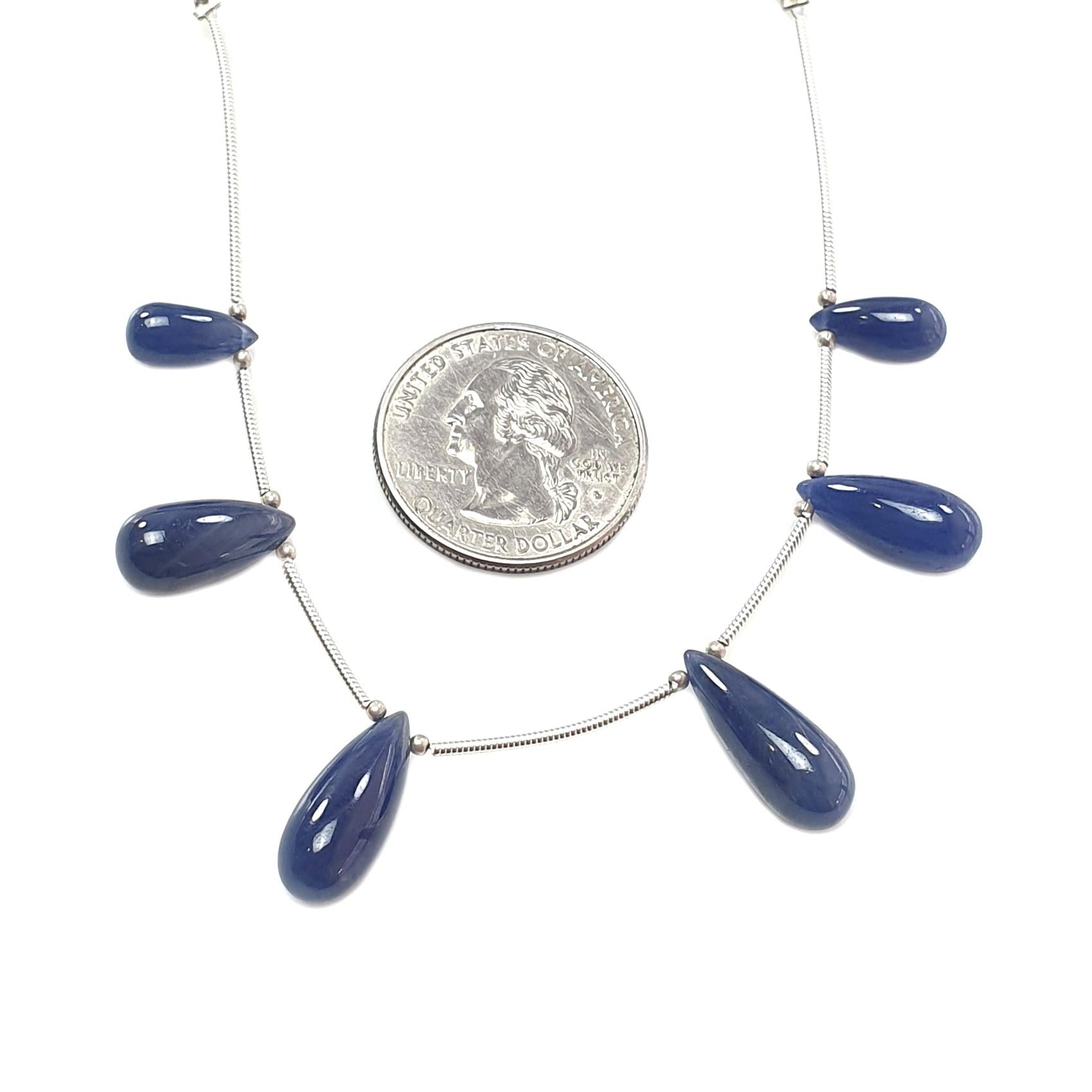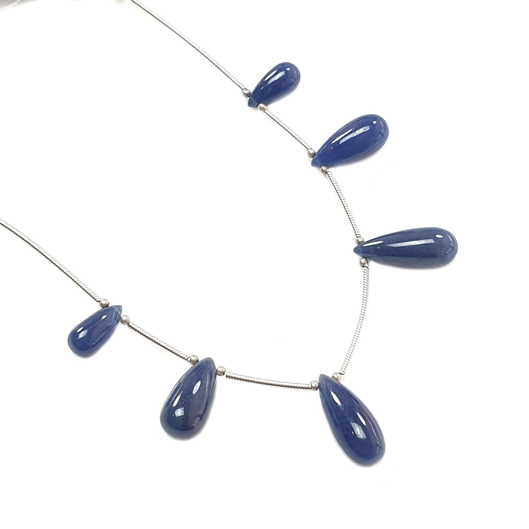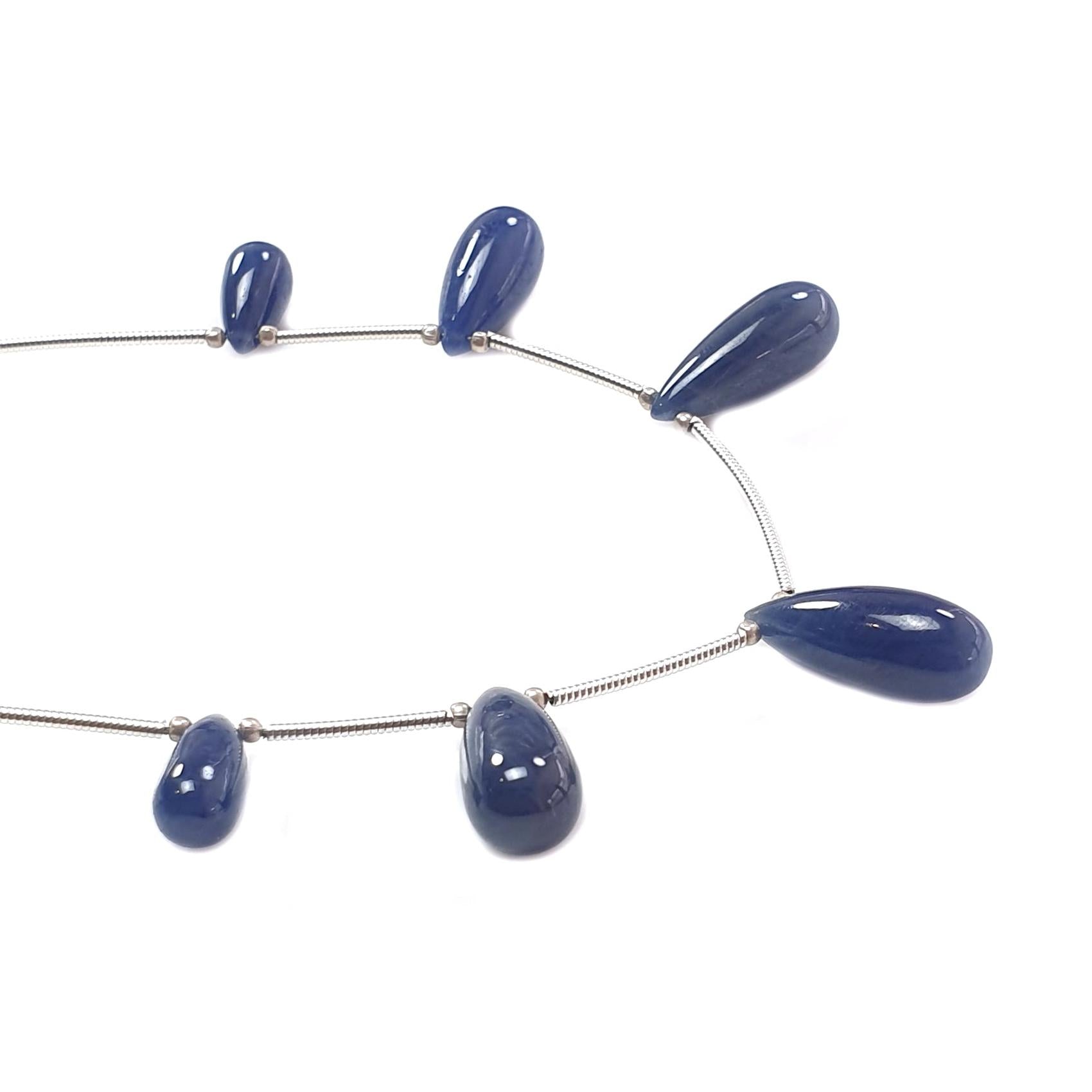 Blue Sapphire Smooth Loose Beads: 43.15cts Natural Untreated Sapphire Plain Teardrops 925 Silver Beads 11mm - 18mm September Birthstone
