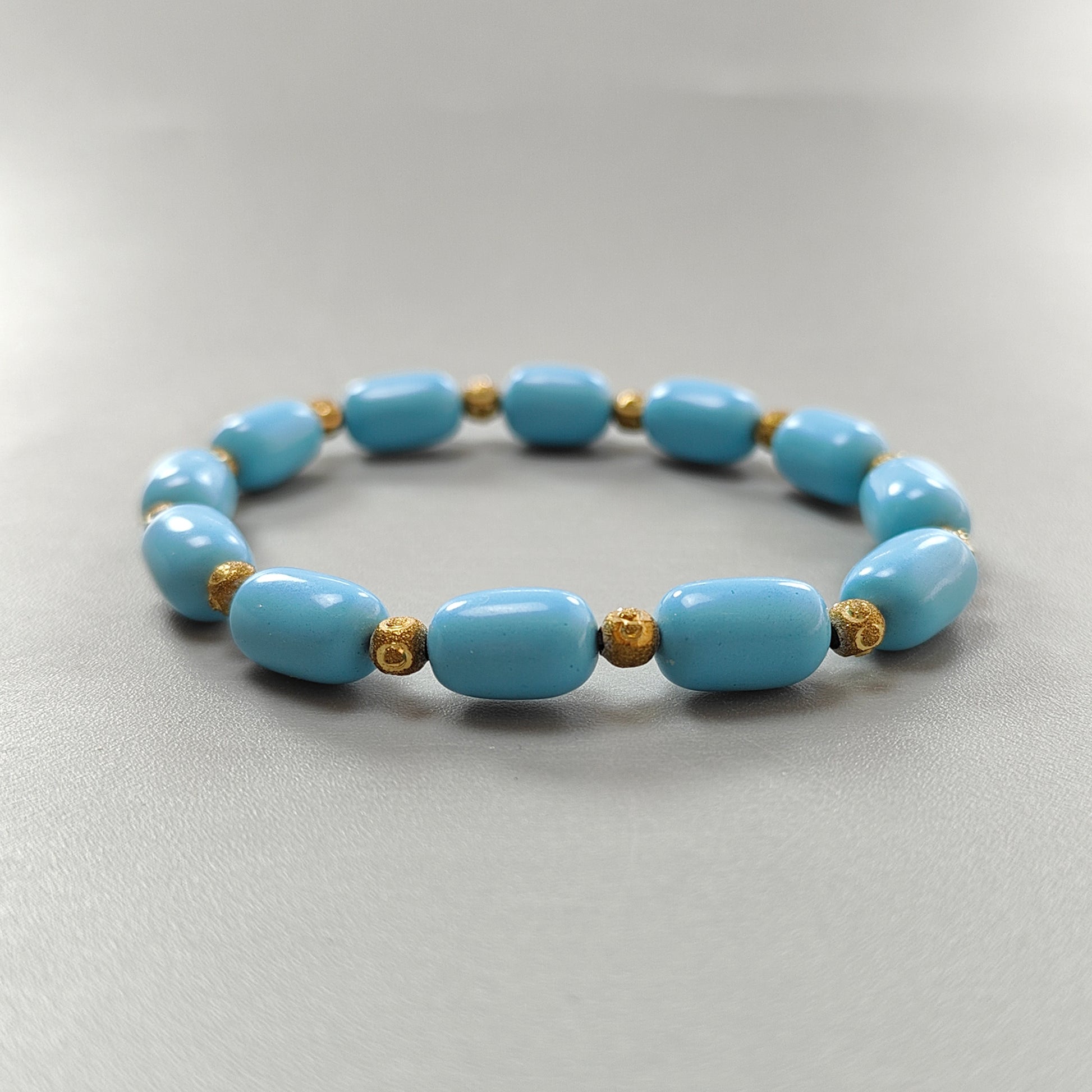 Blue Synthetic Turquoise Beads Bracelet: 44.90cts Simulant Turquoise Baguette Plain Stretchable Brass Bracelet 11mm 6"