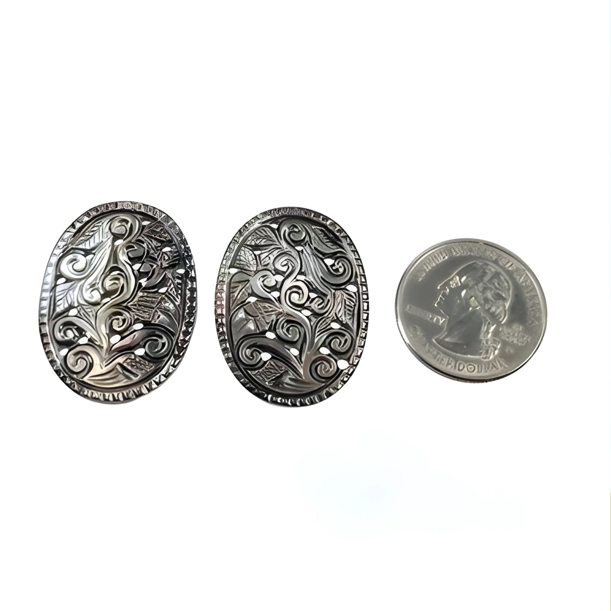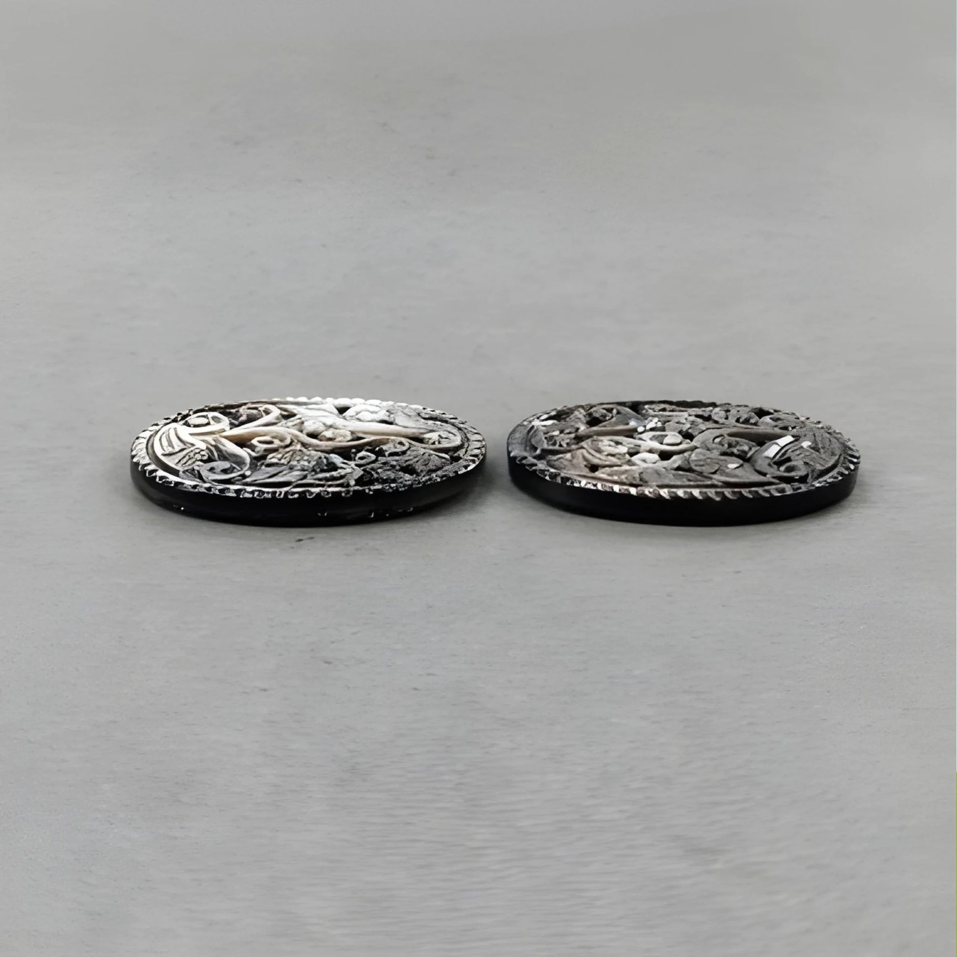 45.00cts Mother Of Pearl Gemstone Carving Natural Untreated Black Oval Shape 33.5*25mm Pair