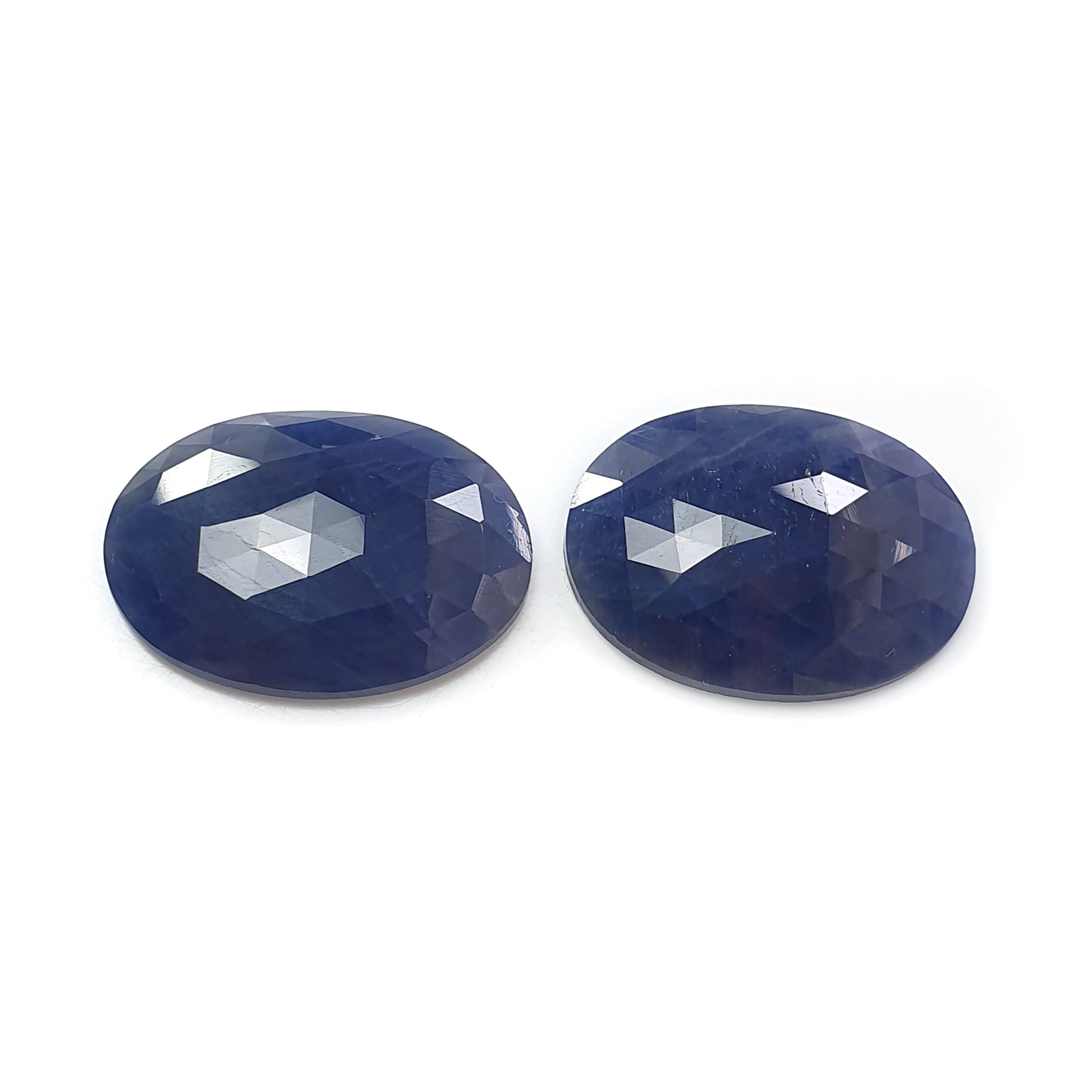Blue Sapphire Faceted Rose Cut Slices: 46.50cts Natural Untreated Unheated Sapphire Oval Shape 2pcs For Jewelry 25.5*18mm - 25*19mm