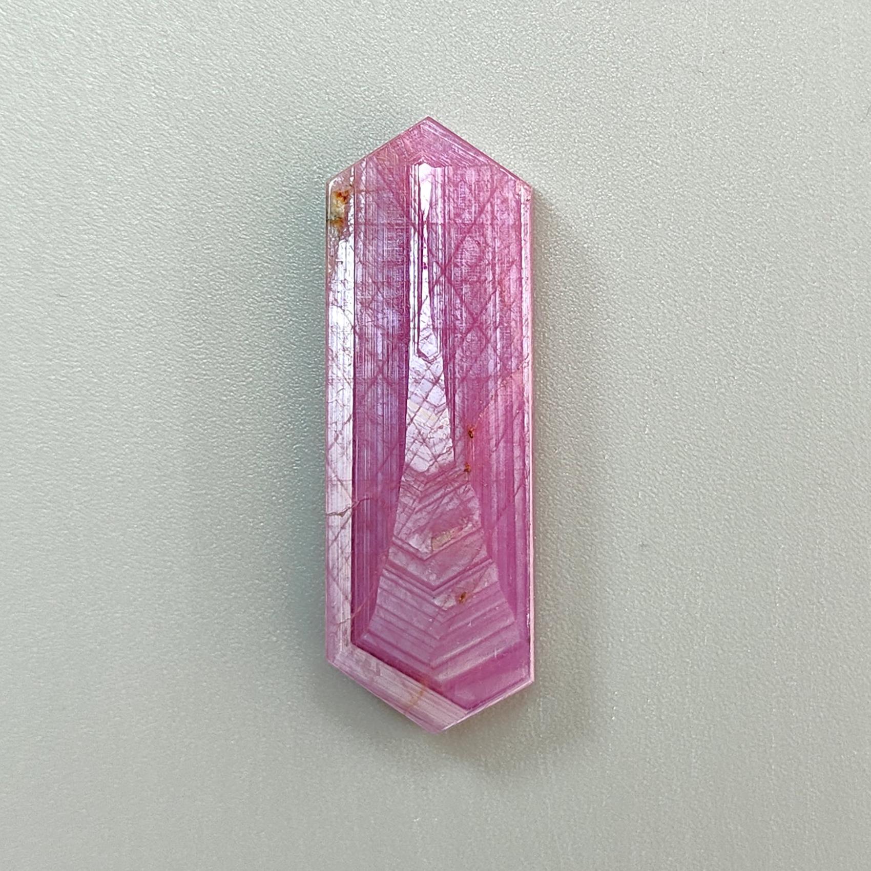 Rosemary Ruby Gemstone Flat Slices: 46.50cts Natural Untreated Sheen Pink Ruby Unique Eiffel Tower Engraved 41.5*15mm 1pc For Jewelry