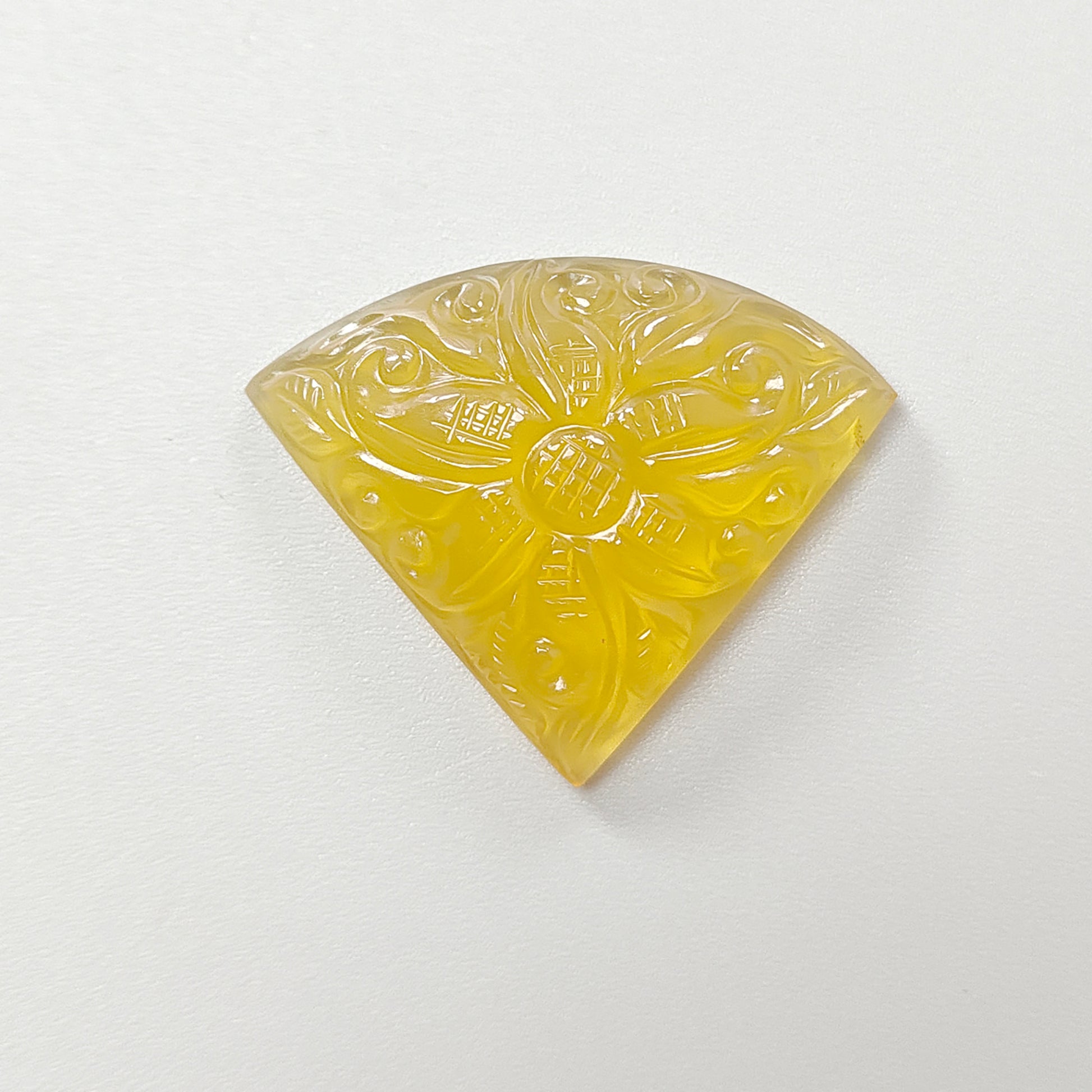 Yellow Opal Gemstone Carving: 47.60cts Natural Untreated Opal October Birthstone Hand Carved Triangle Shape 39*32mm 1pcs For Jewelry