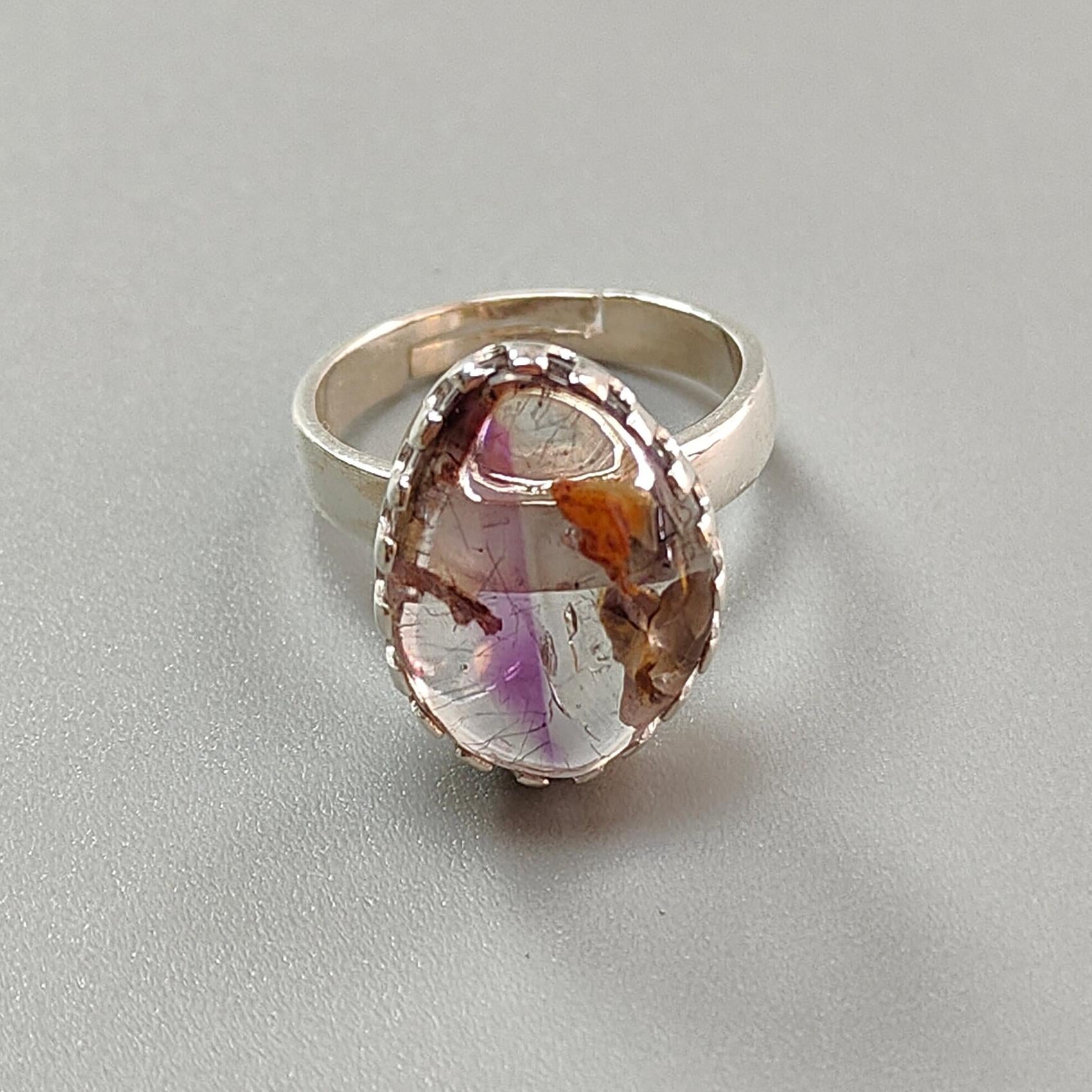 Amethyst Plain Silver Ring: 5.31gms Natural Untreated Super Seven Amethyst Fancy Shape Plain 925 Sterling Silver Bezel Set Adjustable Ring