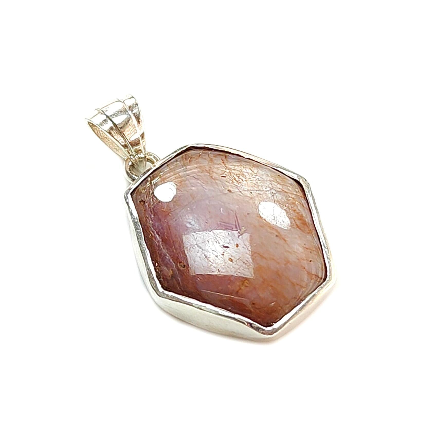 Star Ruby Silver Pendant: 5.48gms Natural Untreated Star Ruby Hexagon Shape Cabochon 925 Sterling Silver Bezel Set Pendant 1.30"