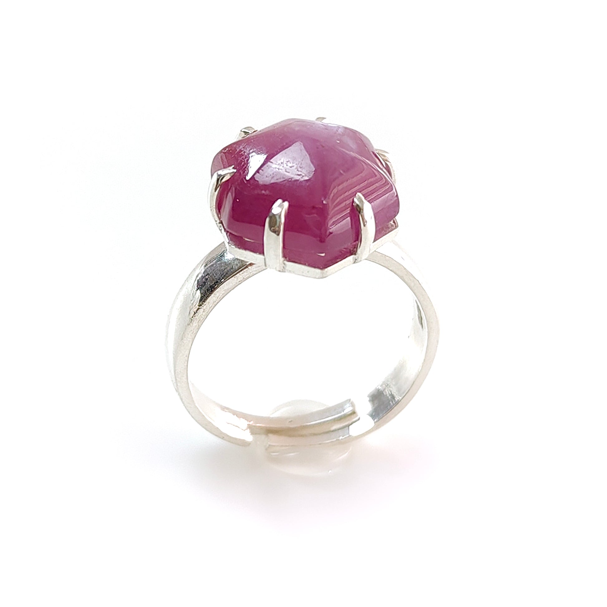 Ruby Cabochon Sugar Loaf Ring: 5.56gms Natural Untreated Sheen Ruby Cabochon 925 Sterling Silver Prong Set Adjustable Ring