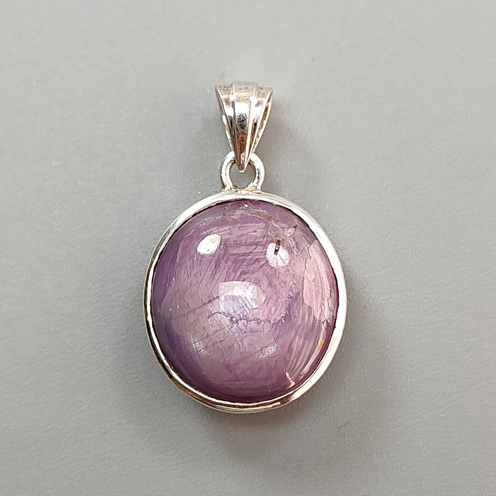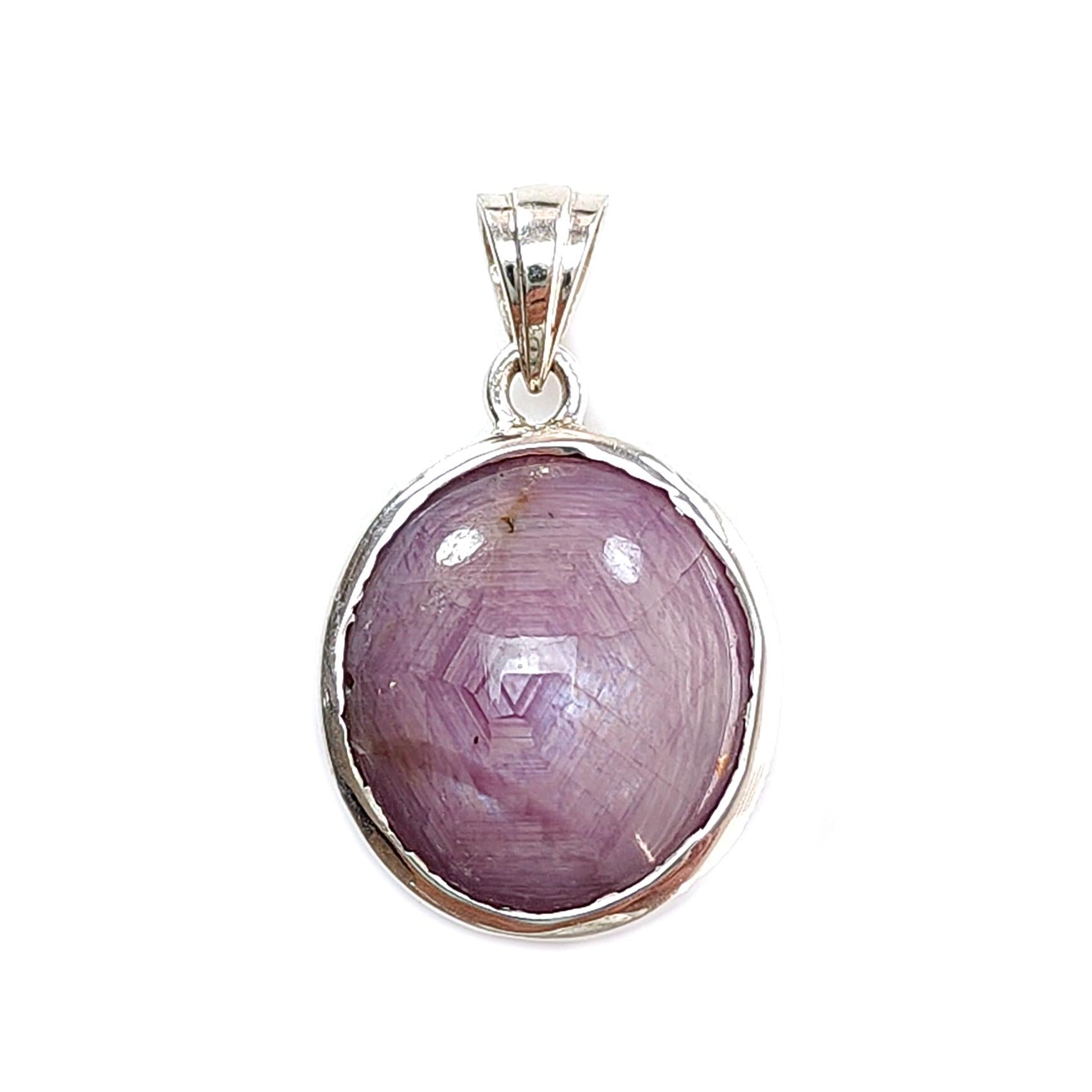 Star Ruby Silver Pendant: 5.62gms Natural Untreated Both Side Star Ruby Oval Plain Briolette 925 Sterling Silver Bezel Set Pendant 1.10"