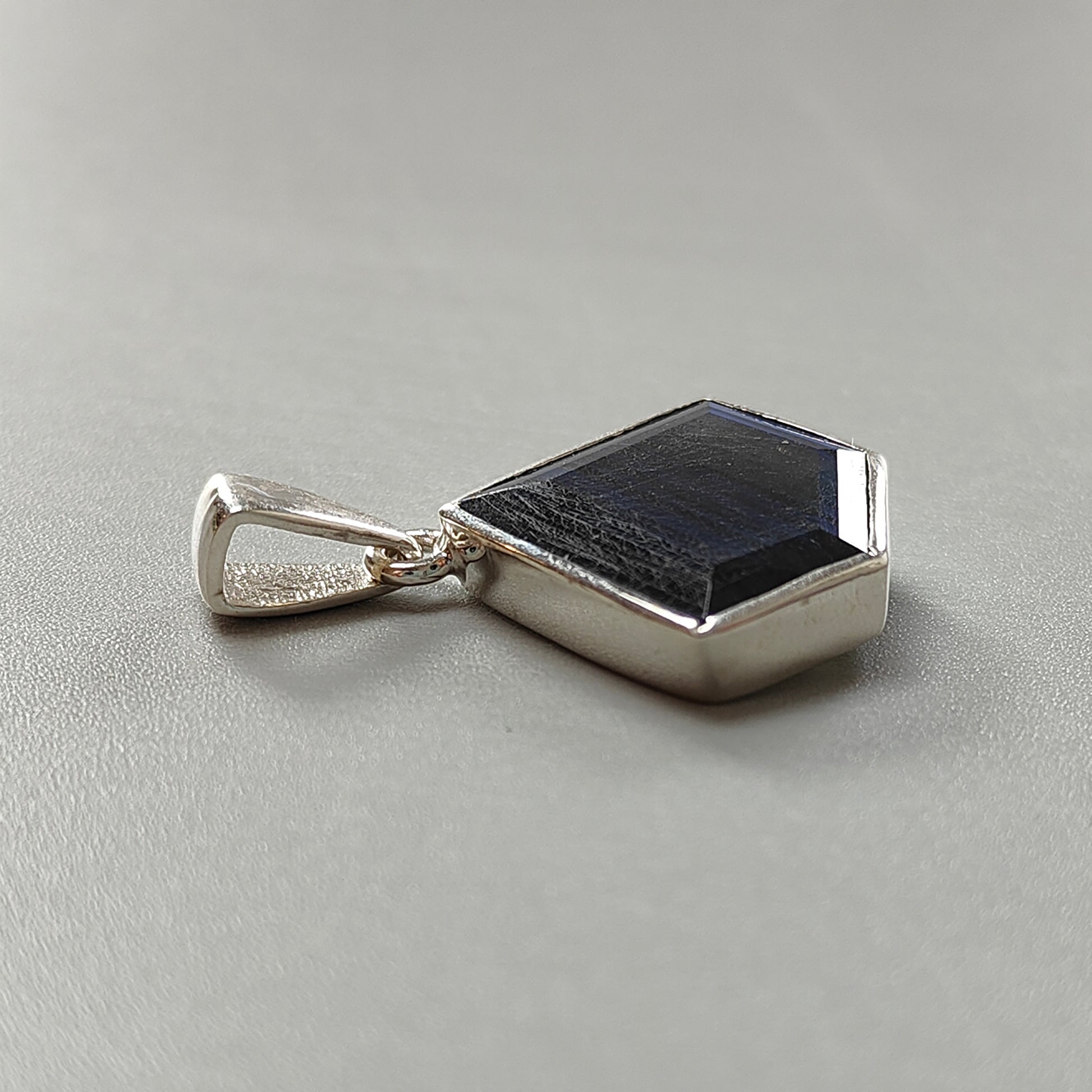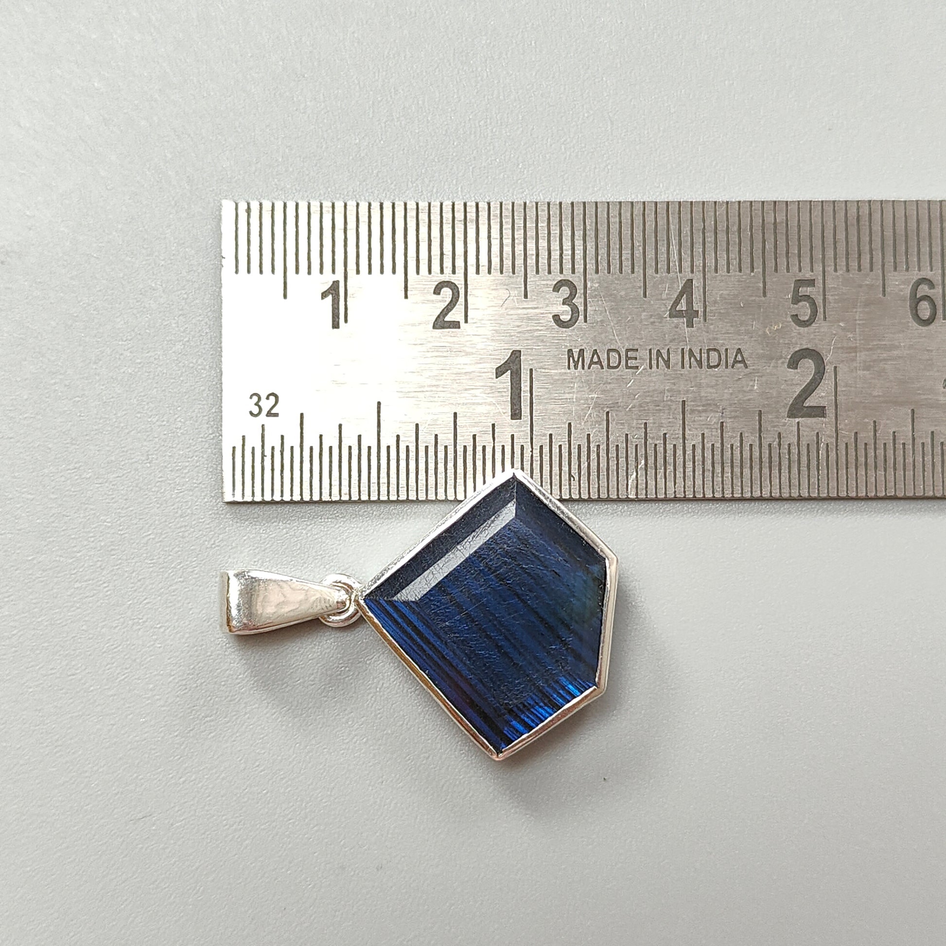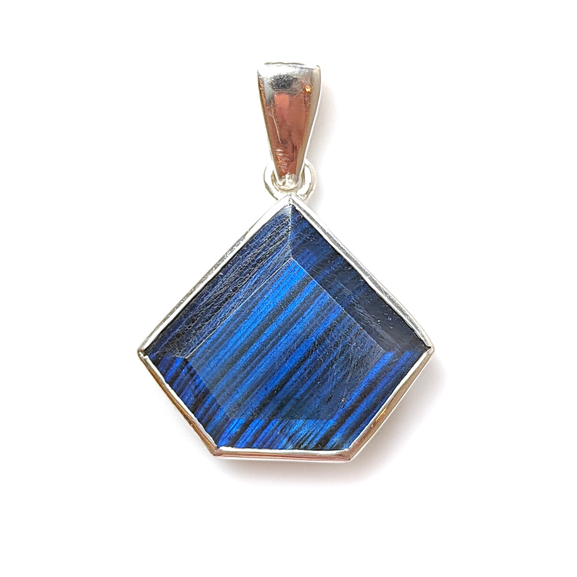 Blue Labradorite Faceted Silver Pendant: 5.8gms Natural Untreated Labradorite Fancy Shape 925 Sterling Silver Bezel Set Pendant 1.50"