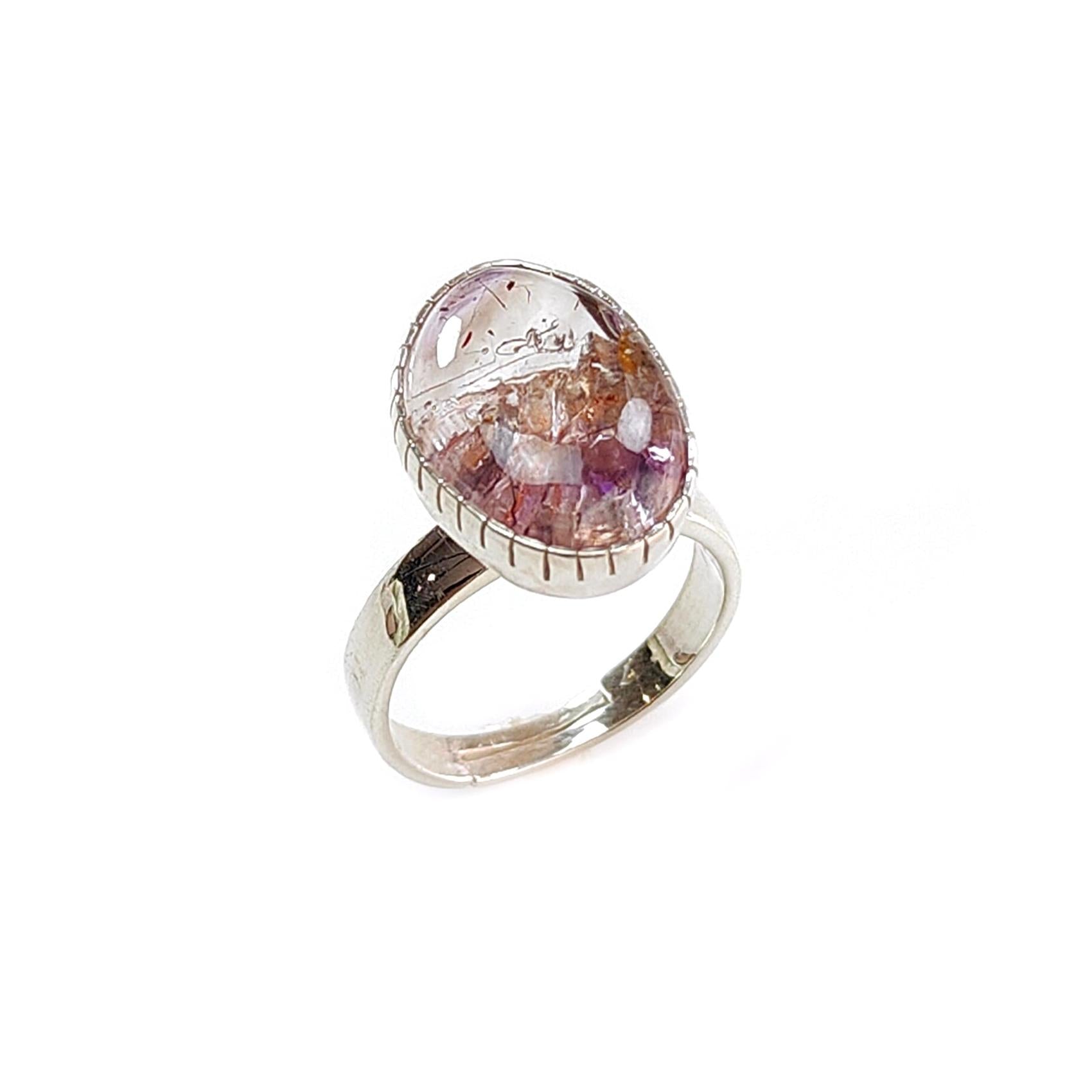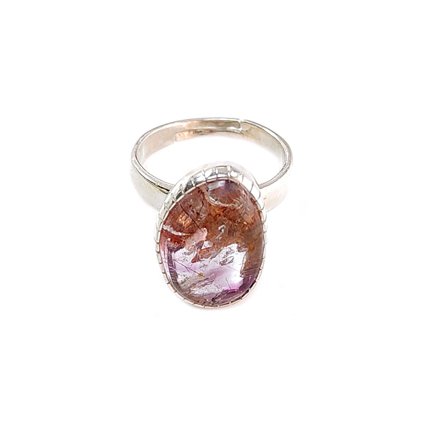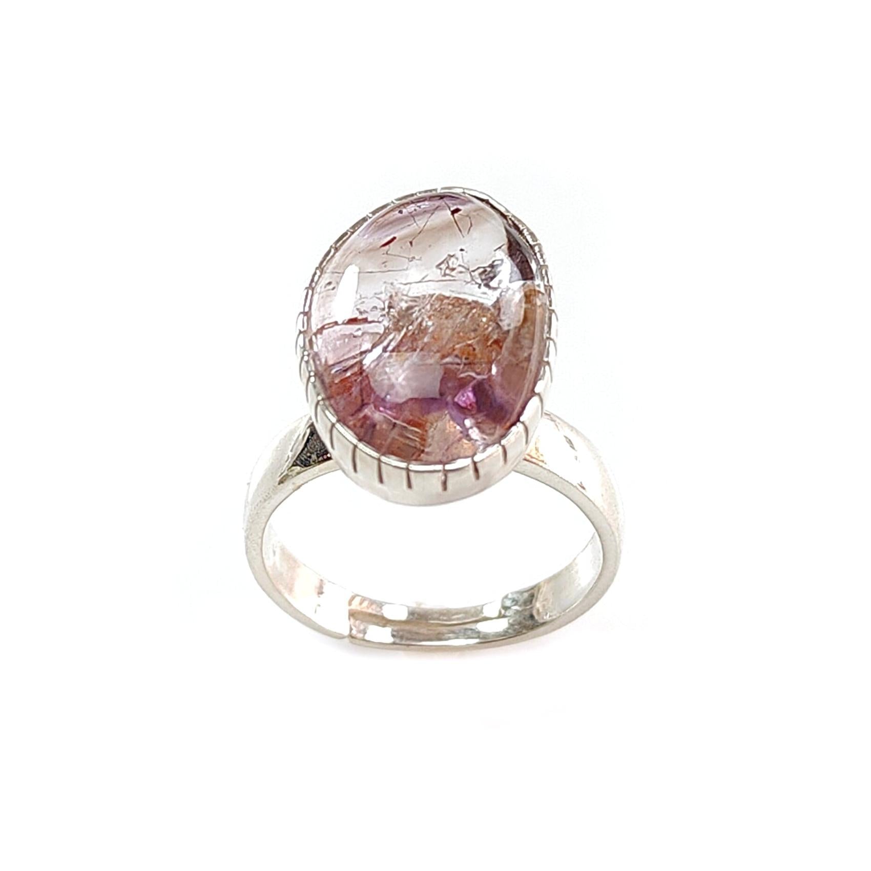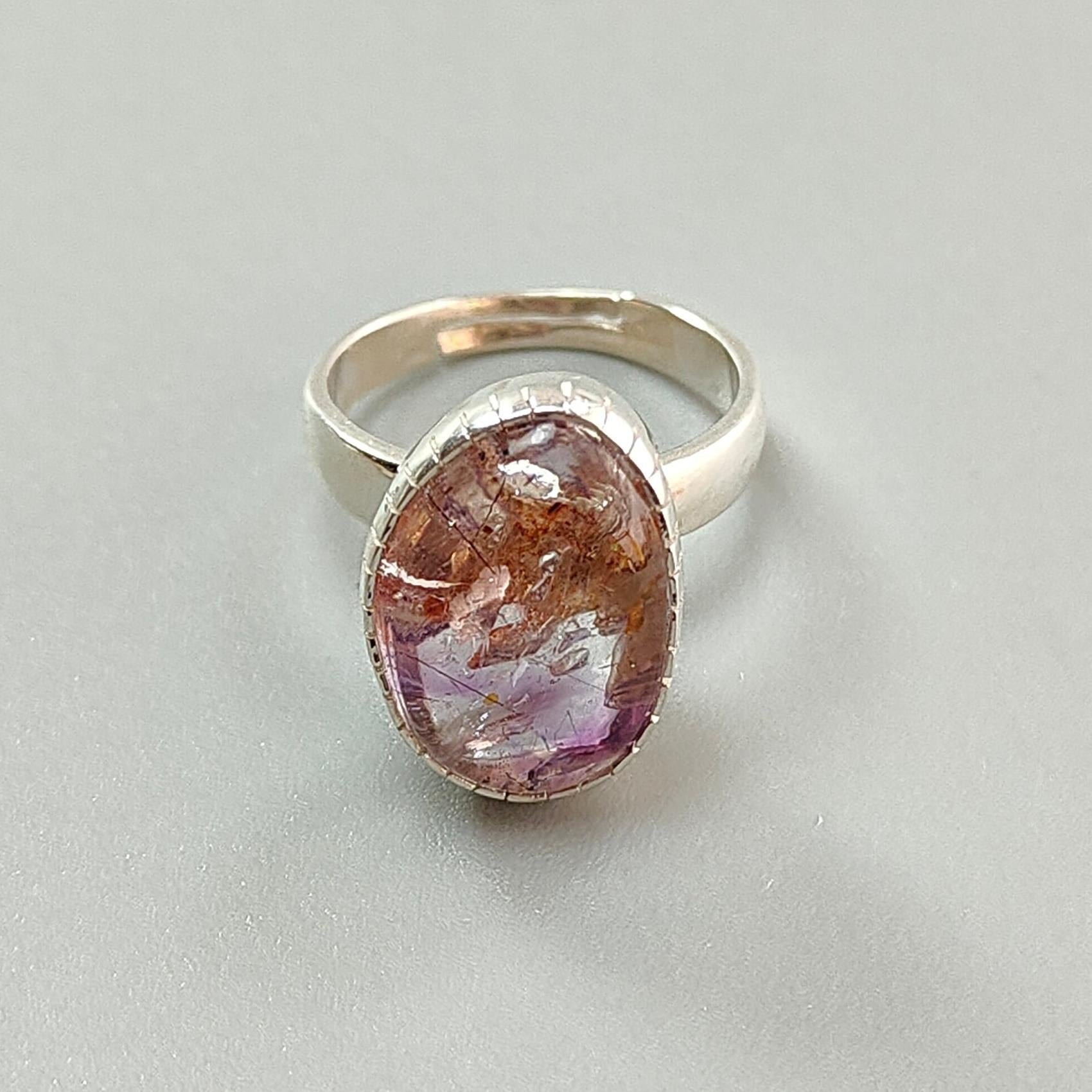 Amethyst Plain Silver Ring: 5.91gms Natural Untreated Super Seven Amethyst Fancy Shape Plain 925 Sterling Silver Bezel Set Adjustable Ring