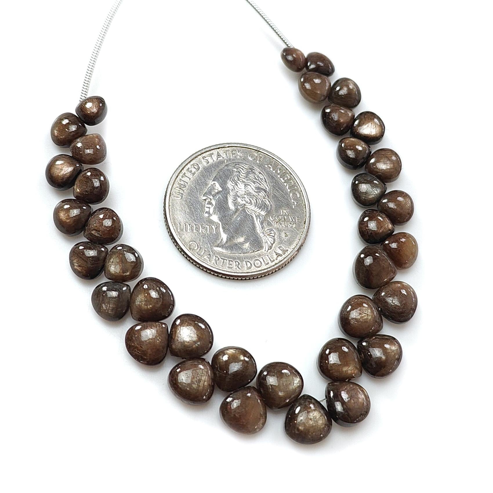 Golden Chocolate Sapphire Smooth Loose Beads: 54.60cts (Approx) Natural Untreated Sapphire Gemstone Cushion Shape Beads 5mm-7mm 5.5" Strand