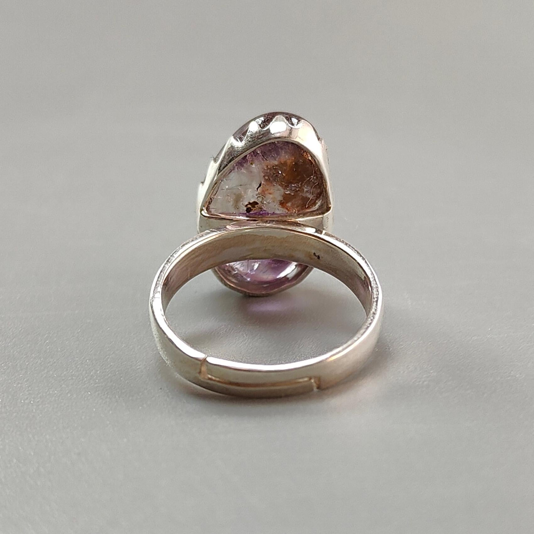 Amethyst Plain Silver Ring: 6.37gms Natural Untreated Super Seven Amethyst Fancy Shape Plain 925 Sterling Silver Bezel Set Adjustable Ring