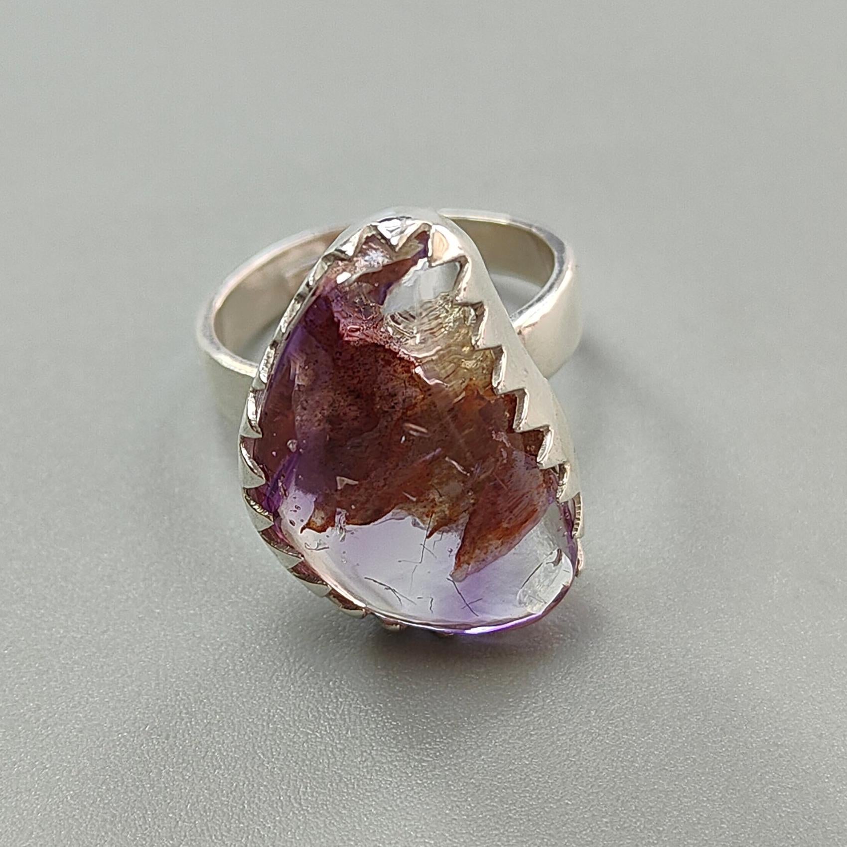 Amethyst Plain Silver Ring: 6.46gms Natural Untreated Super Seven Amethyst Fancy Shape Plain 925 Sterling Silver Bezel Set Adjustable Ring