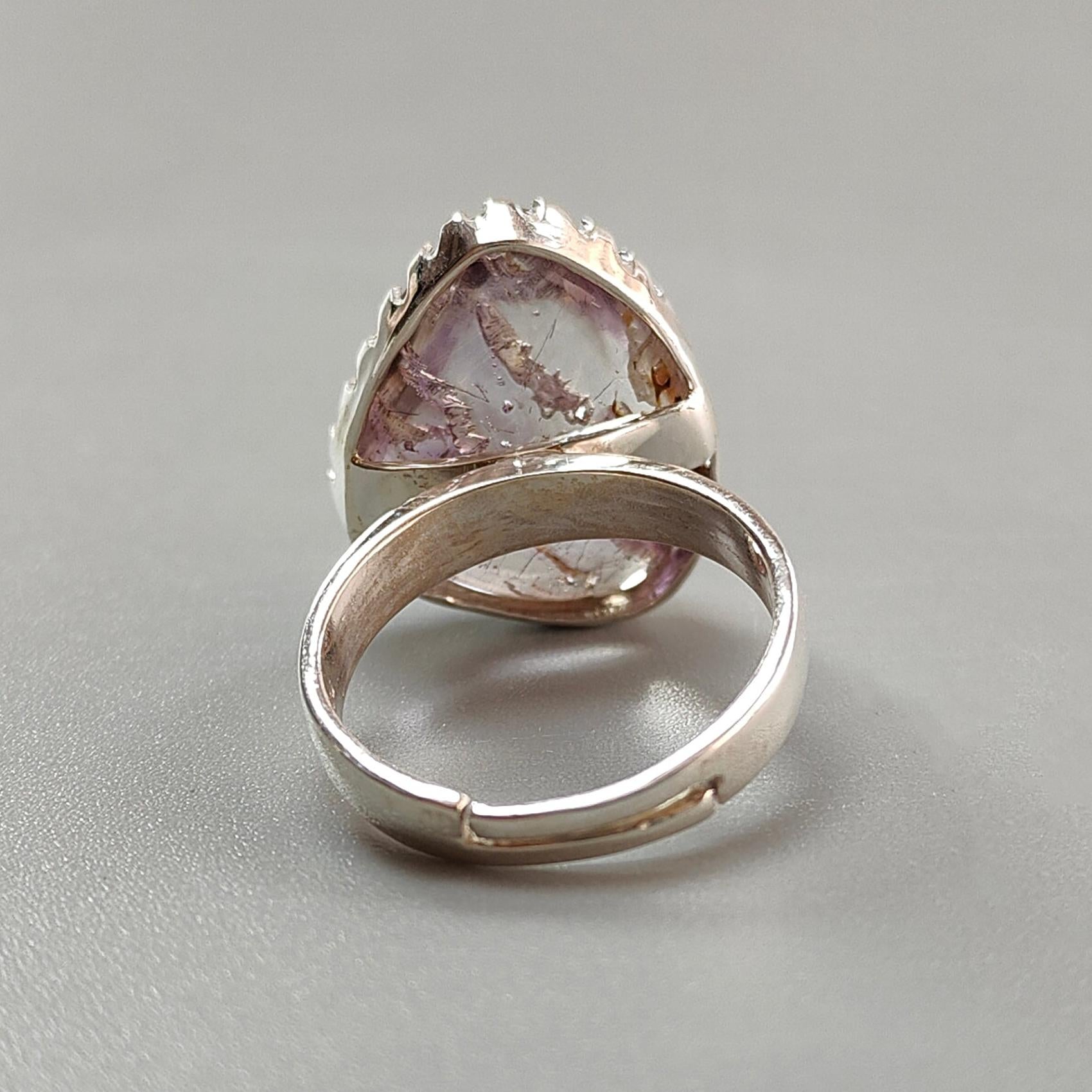 Amethyst Plain Silver Ring: 6.77gms Natural Untreated Super Seven Amethyst Fancy Shape Plain 925 Sterling Silver Bezel Set Adjustable Ring