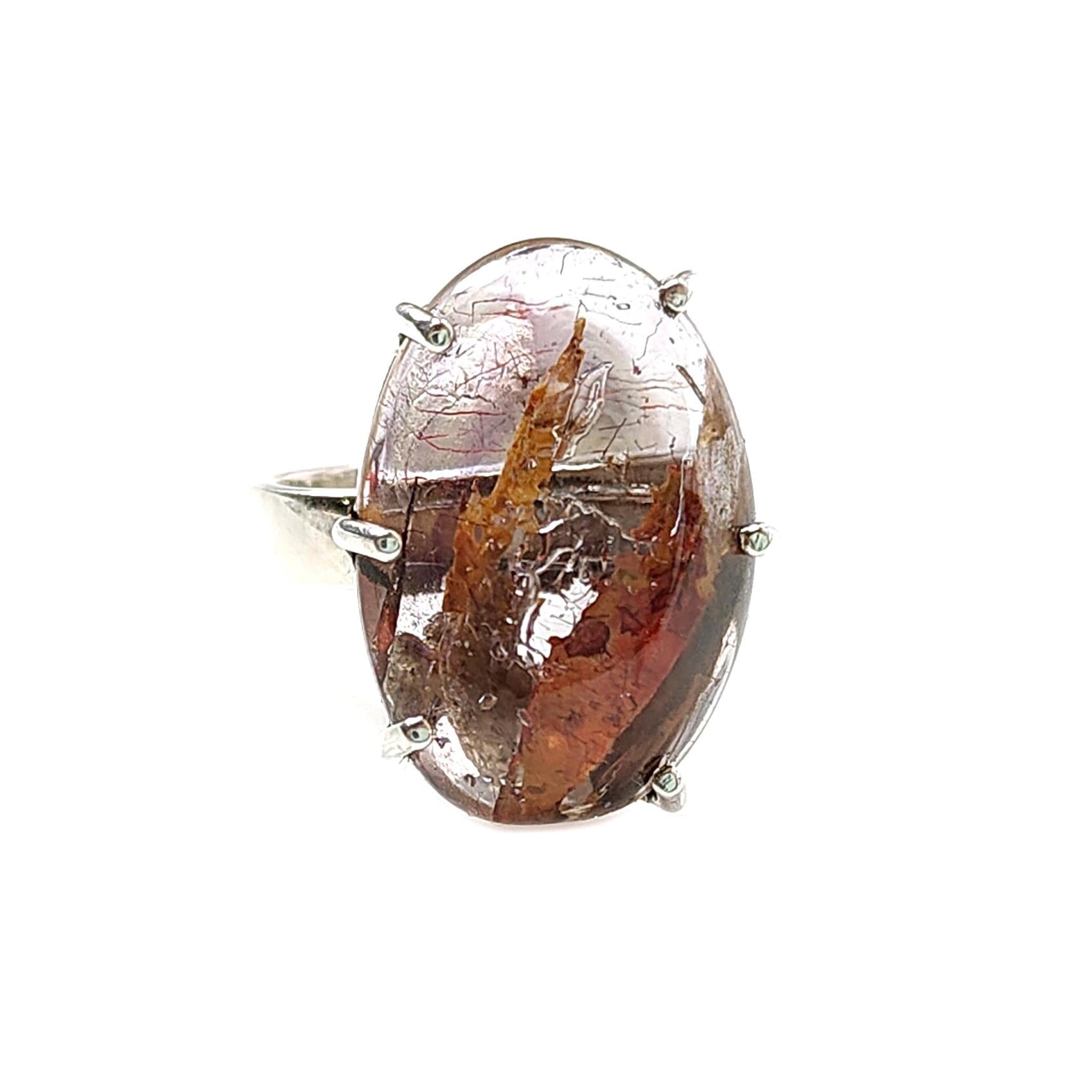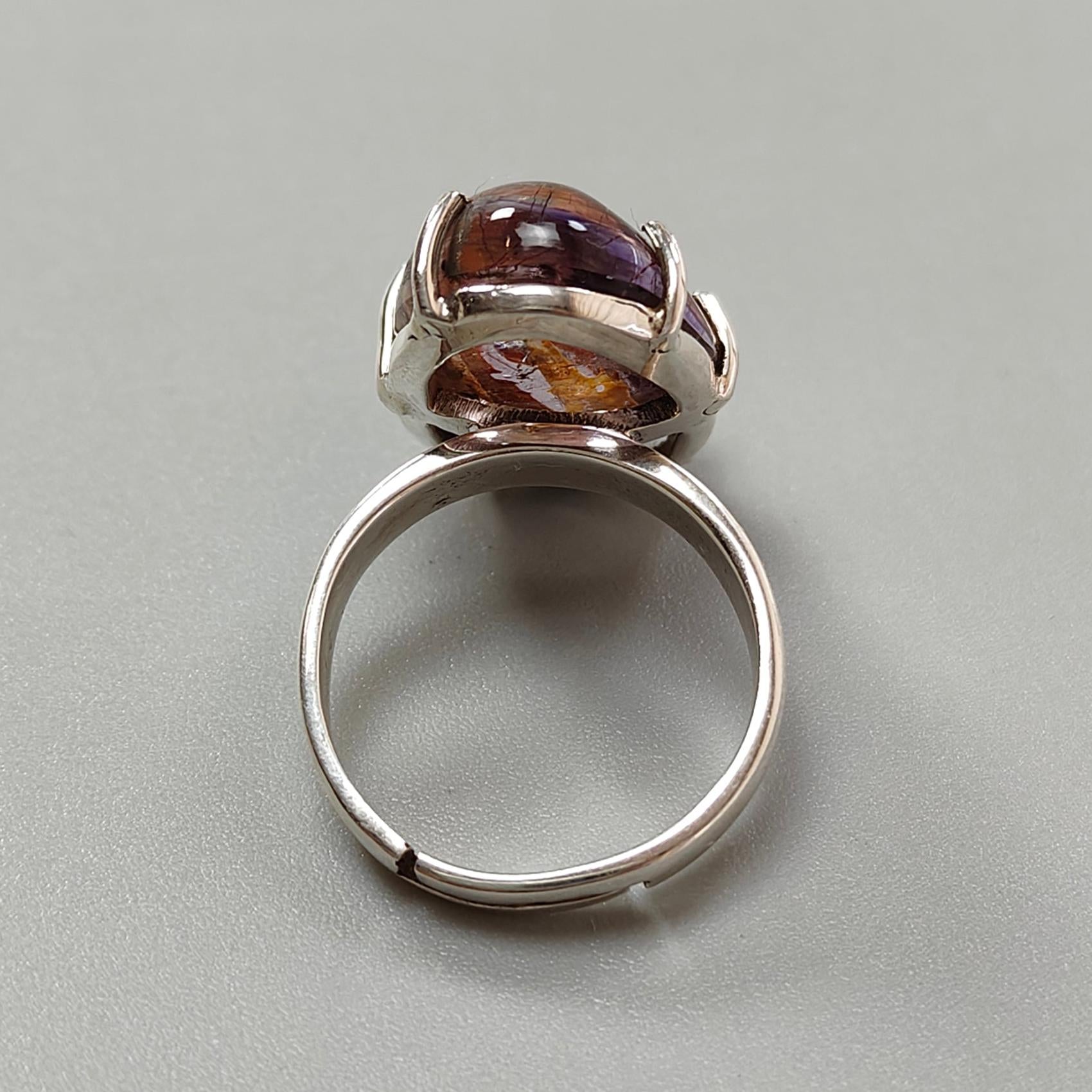 Super Seven Plain Silver Ring: 7.43gms Natural Untreated Amethyst Fancy Shape Plain 925 Sterling Silver Prong Set Adjustable Ring