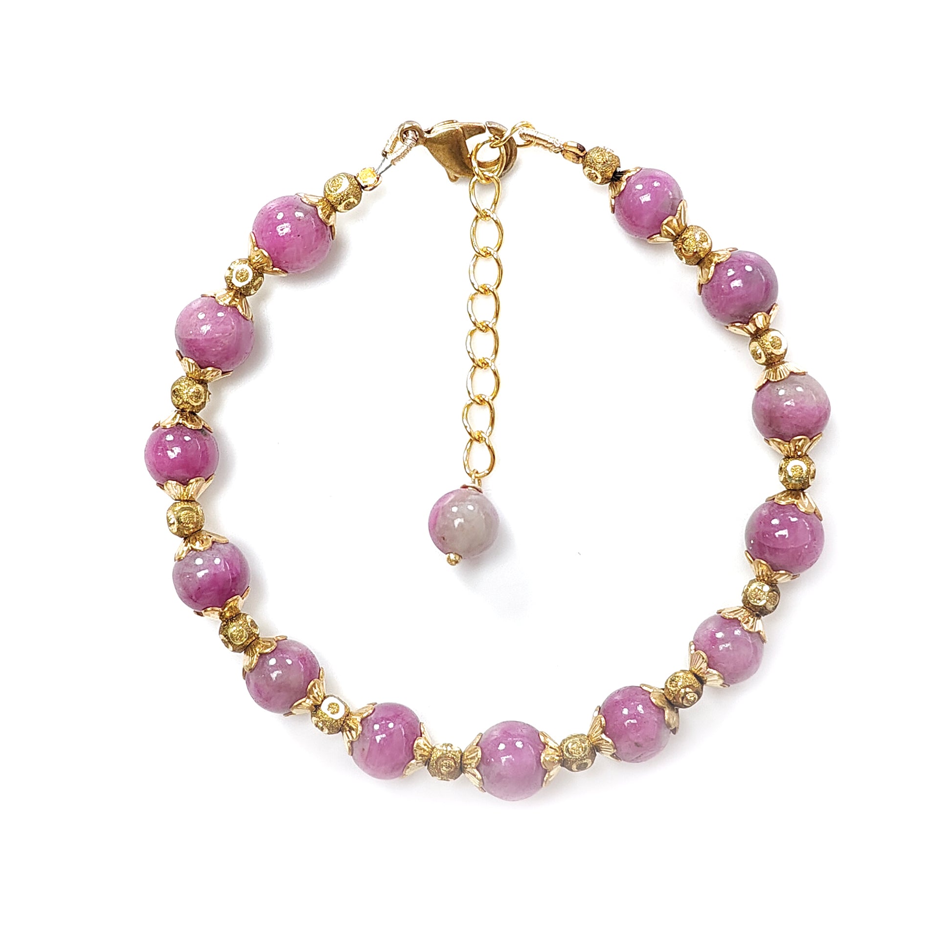 Zoisite Ruby Beads Bracelet: 72.15cts Natural Untreated Zoisite Ruby Round Plain Brass Bracelet 7mm 6.50"