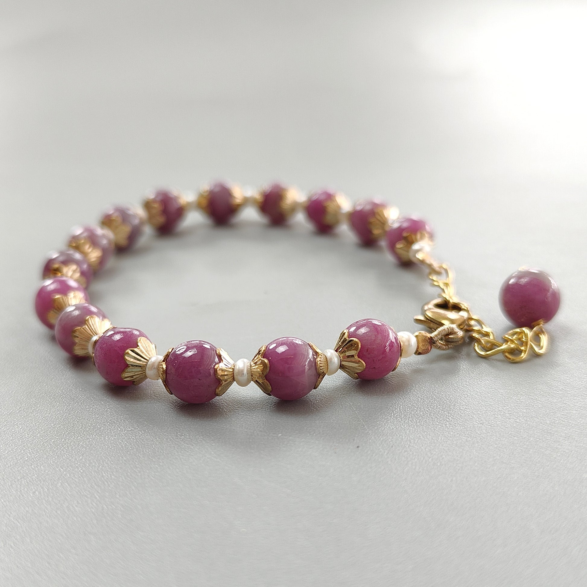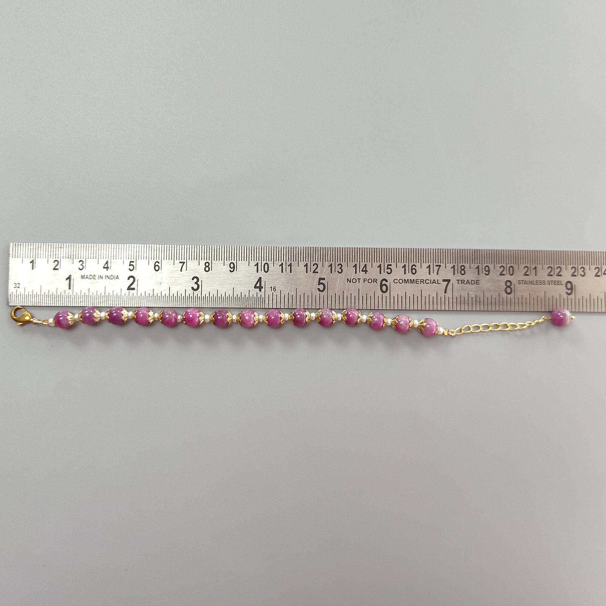 Zoisite Ruby & White Pearl Beads Bracelet: 72.80cts Natural Untreated Zoisite Ruby Round Plain Brass Bracelet 3mm - 7mm 6"